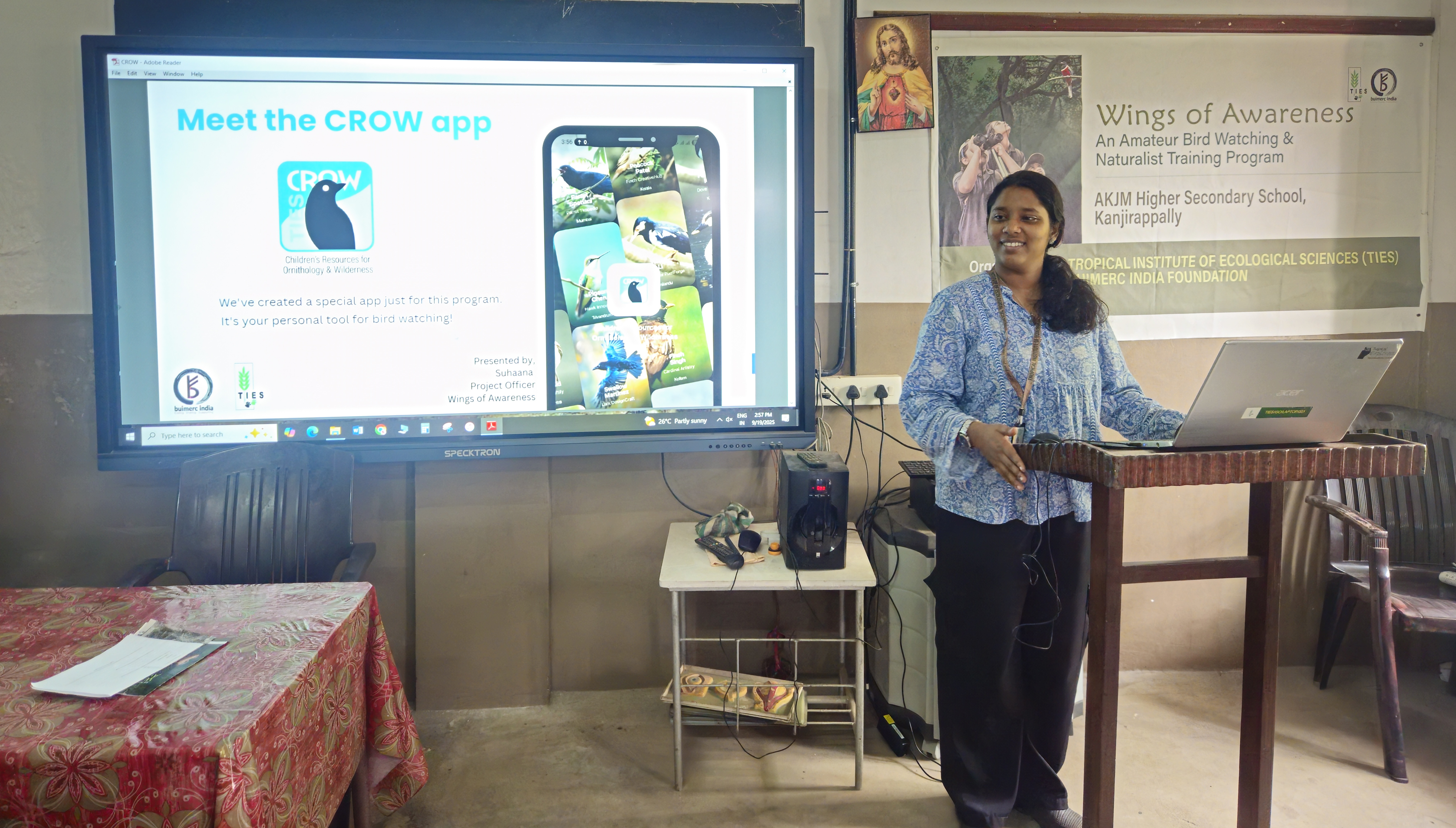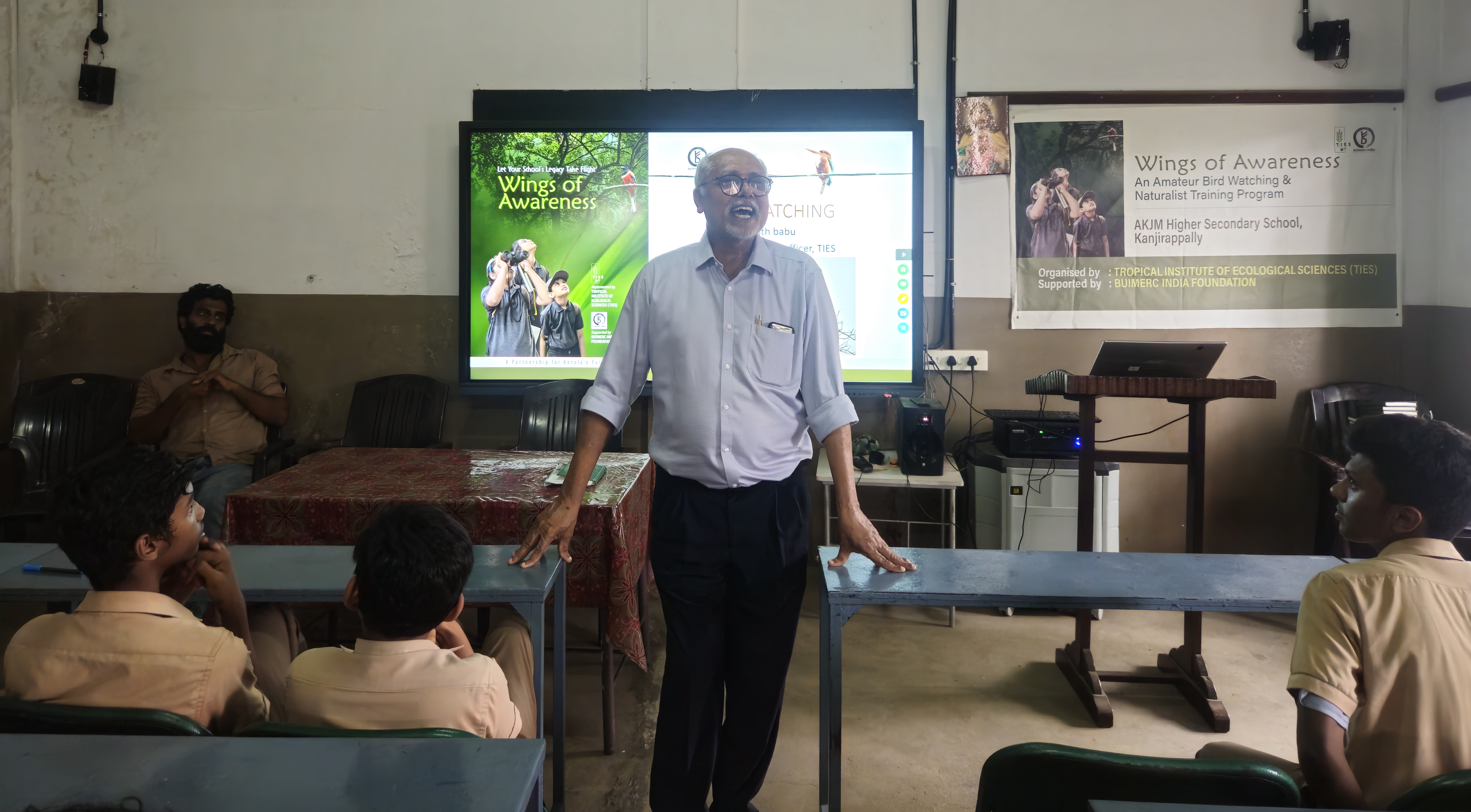 The Wings of Awareness orientation programme was organized at AKJM School, Kanjirappally, under the initiative of the Tropical Institute of Ecological Sciences (TIES) conceived and supported by Buimerc India Foundation. This programme aims to awaken in students an appreciation for the natural world, with a special focus on birds, while encouraging them to grow into responsible stewards of the environment. The project will be implemented across 20 schools in Kottayam District, engaging around 1,000 students and 60 teachers.
