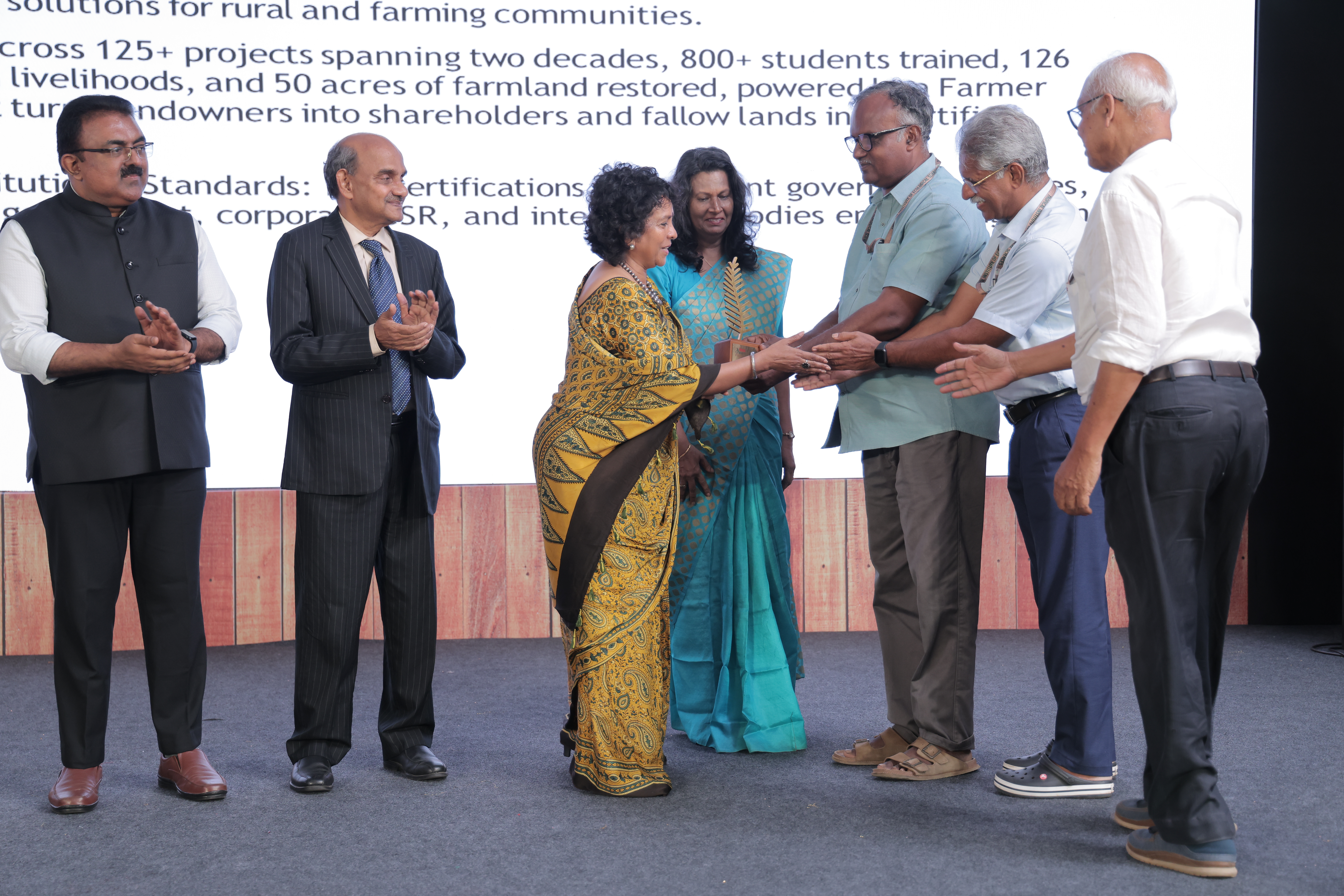 Measurable Impact at Scale: Our legacy of executing over 125 projects spanning two decades was a key factor in the accolade. The jury highlighted our tangible results: over 800 students trained, 126 community members skilled in sustainable livelihoods, and 50 acres of farmland restored. This was made possible through our innovative Farmer Producer Company model, which turns landowners into shareholders and transforms fallow lands into certified organic farms.