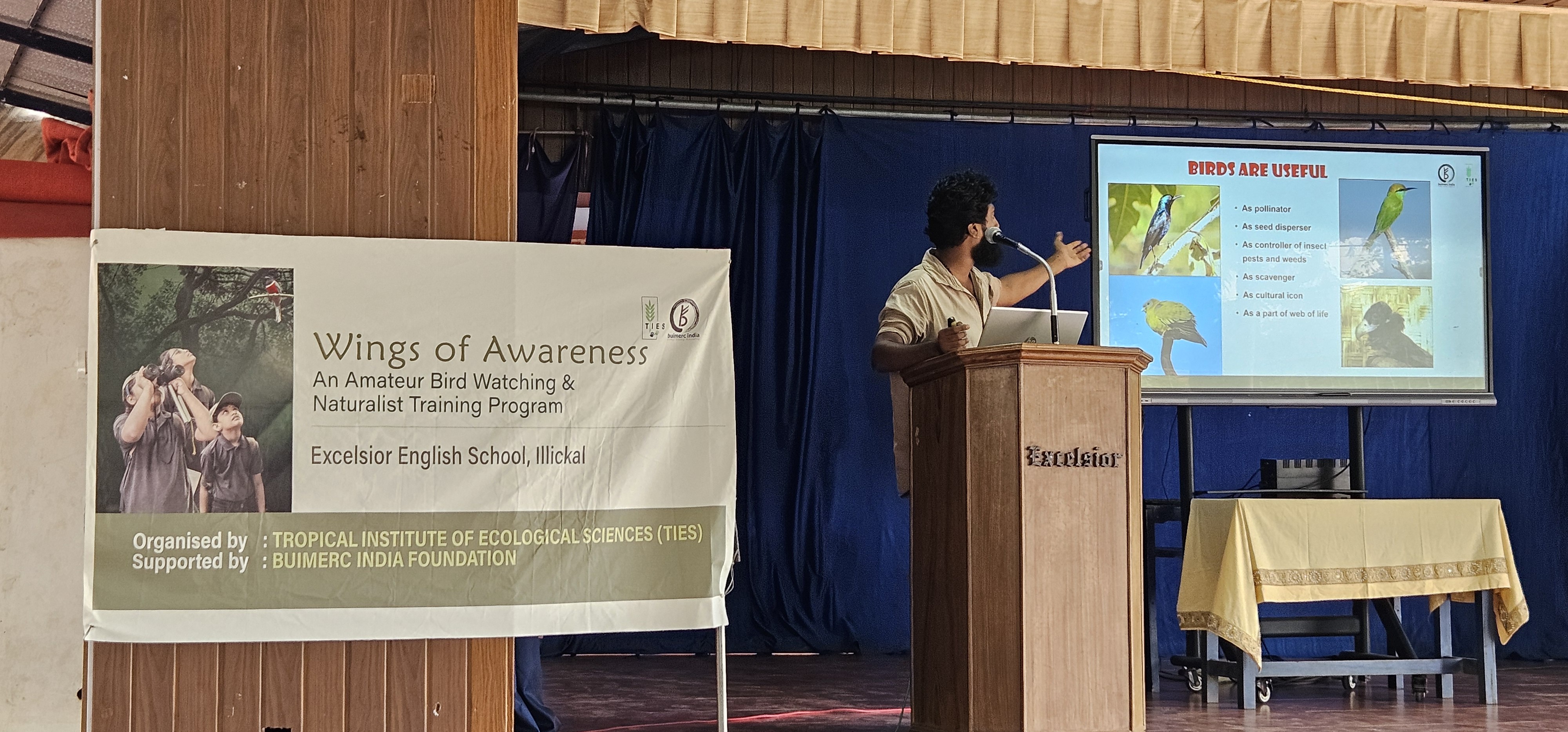 The Wings of Awareness project, implemented by the Tropical Institute of Ecological Sciences (TIES) conceived and supported by Buimerc India Foundation, is a unique initiative designed to encourage school students to explore and appreciate the world of birds. Through bird watching and experiential learning, the programme aims to foster curiosity, enhance awareness about biodiversity, and build a deeper connection between children and nature. The project will be implemented across 20 schools in Kottayam District, engaging around 1,000 students and 60 teachers.