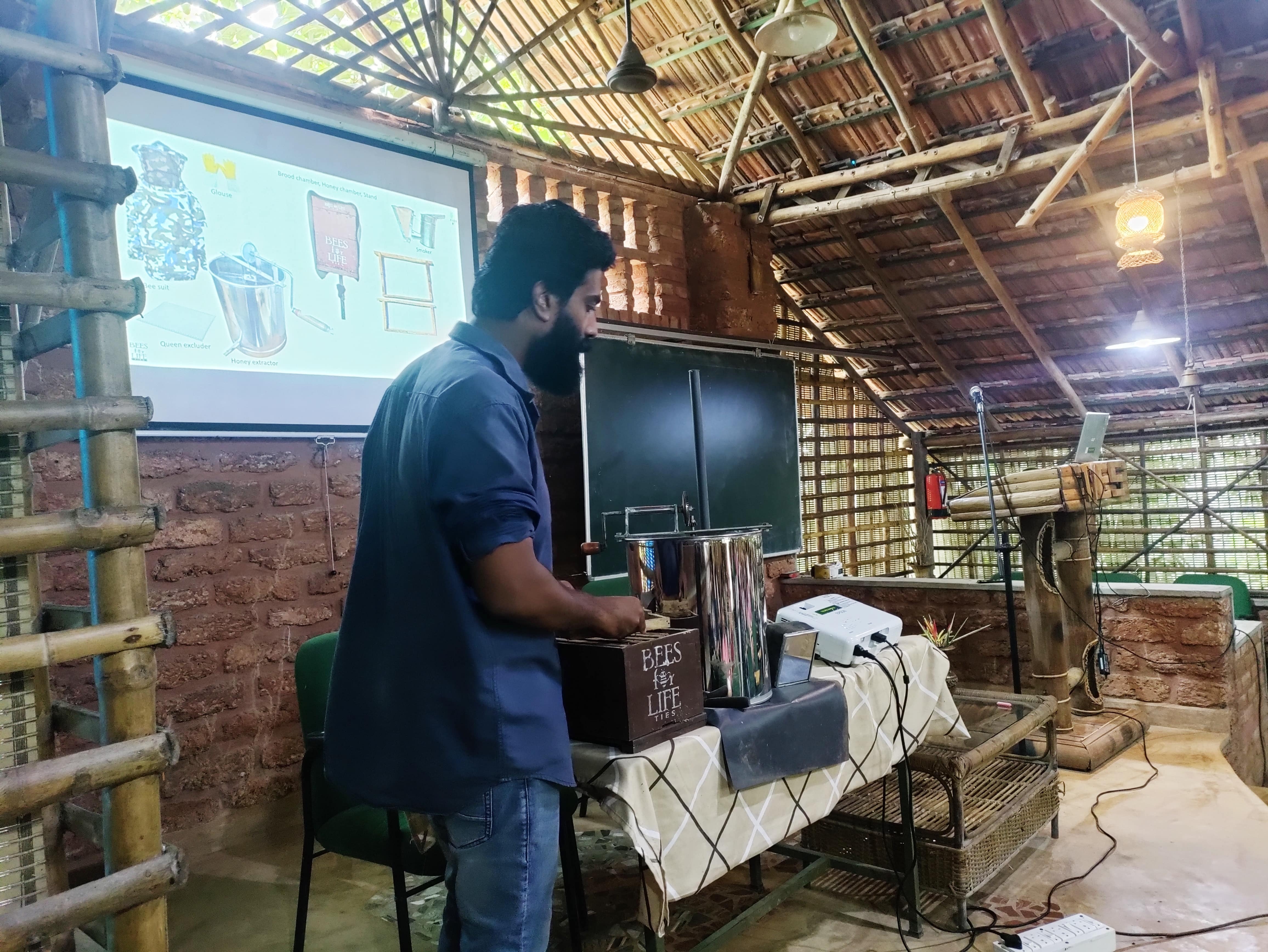 Dr. Punnen Kurian, Secretary of TIES, led a session on “Introduction to Apiculture,” where he highlighted the biology of honey bees and their ecological importance.