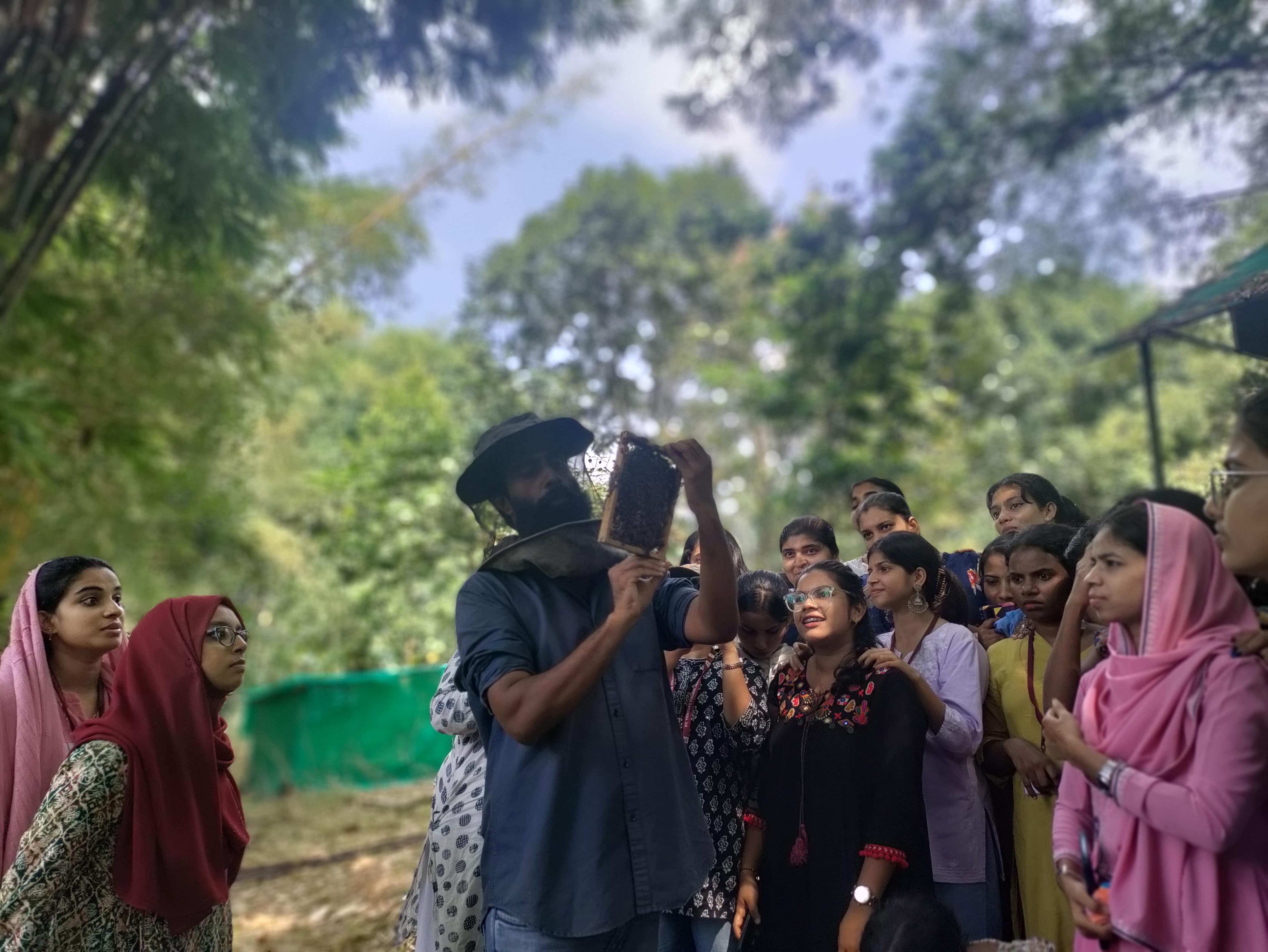 The hands-on experience to explore Apis cerana indica under careful supervision, allowed them to handle a bee colony, identify drones, workers, and queens, and examine a comb. Feedback from students indicated that they now feel confident handling a bee or managing a beehive.