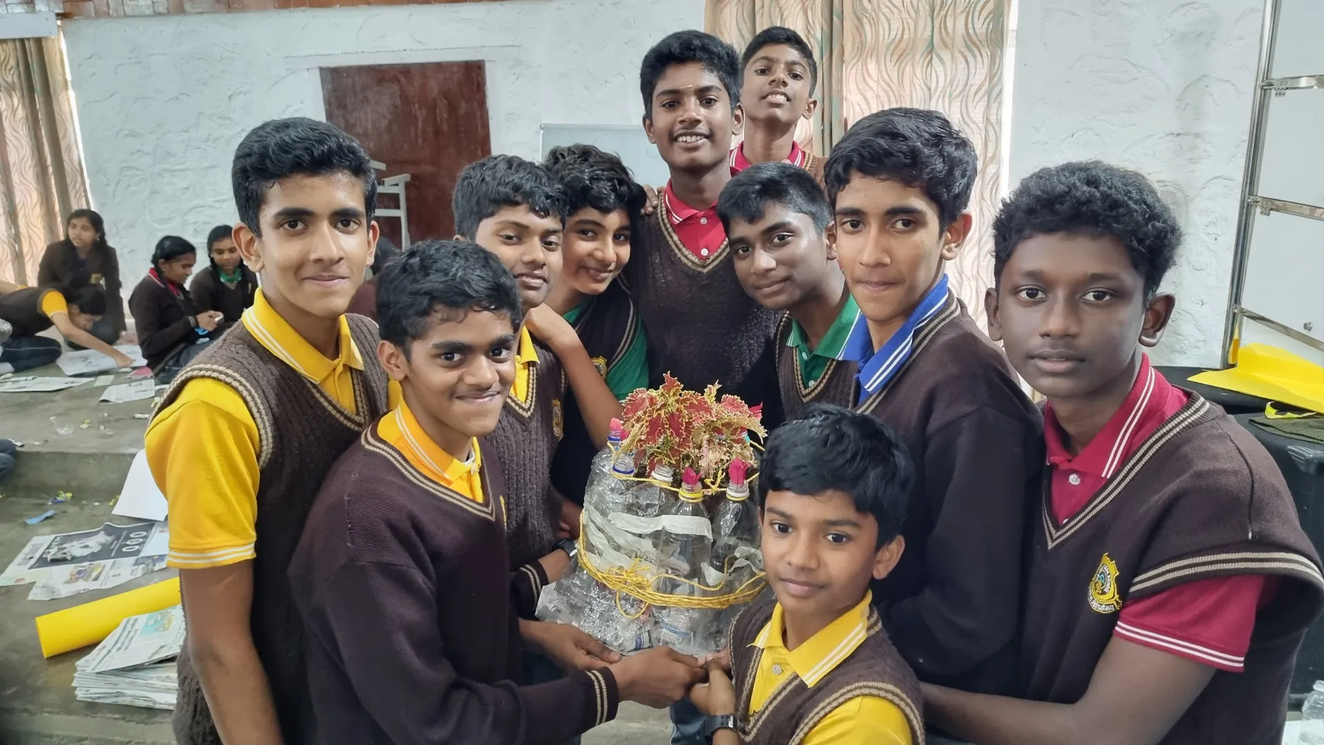 For the group activities, students from grades 8 and 9 were divided into three groups, each tasked with creating projects on topics like Waste Management, Disaster Management, and Green Villages. The group led by Parvathy, focusing on Waste Management, took first place with their creative use of scrap materials.