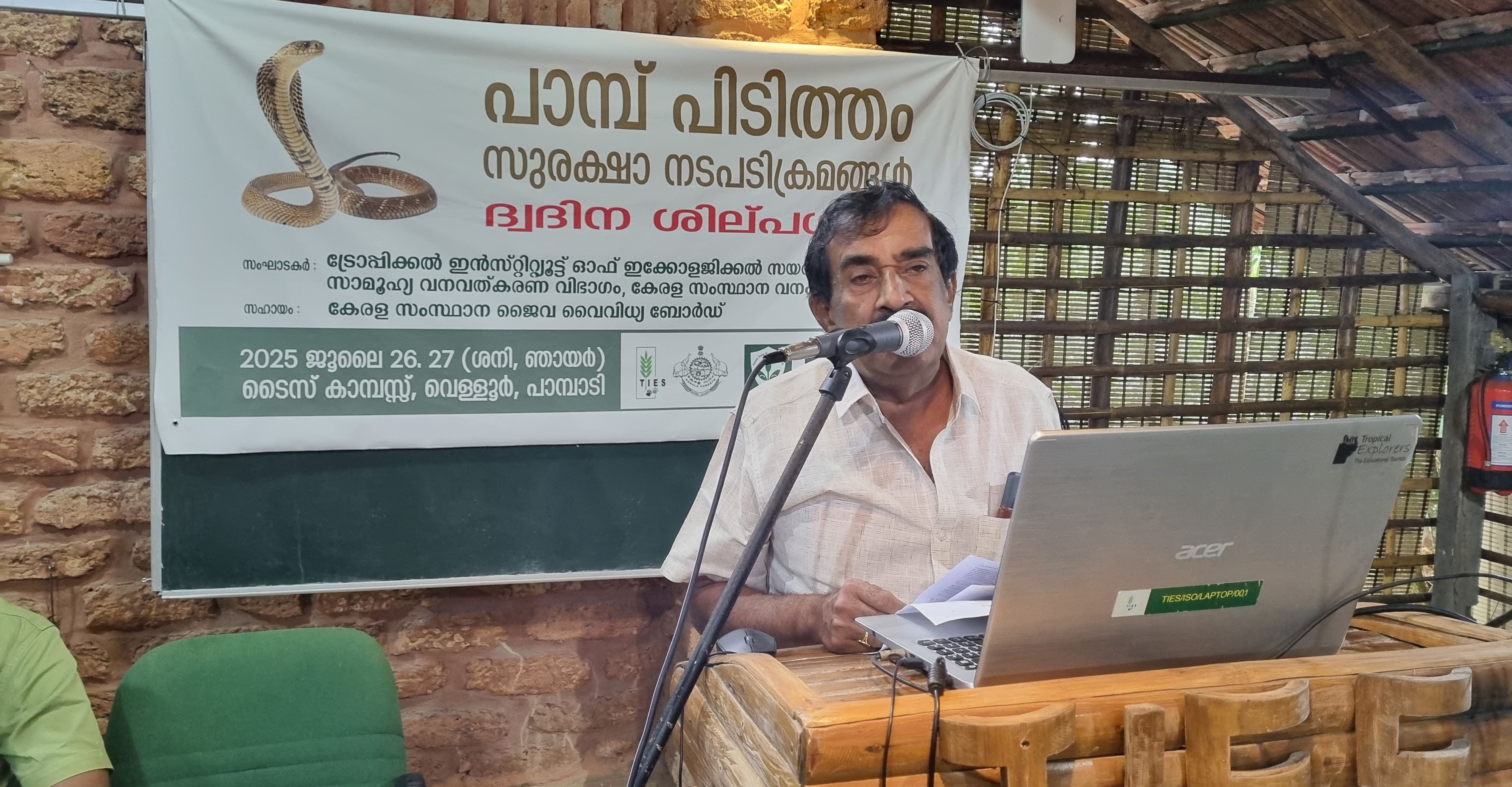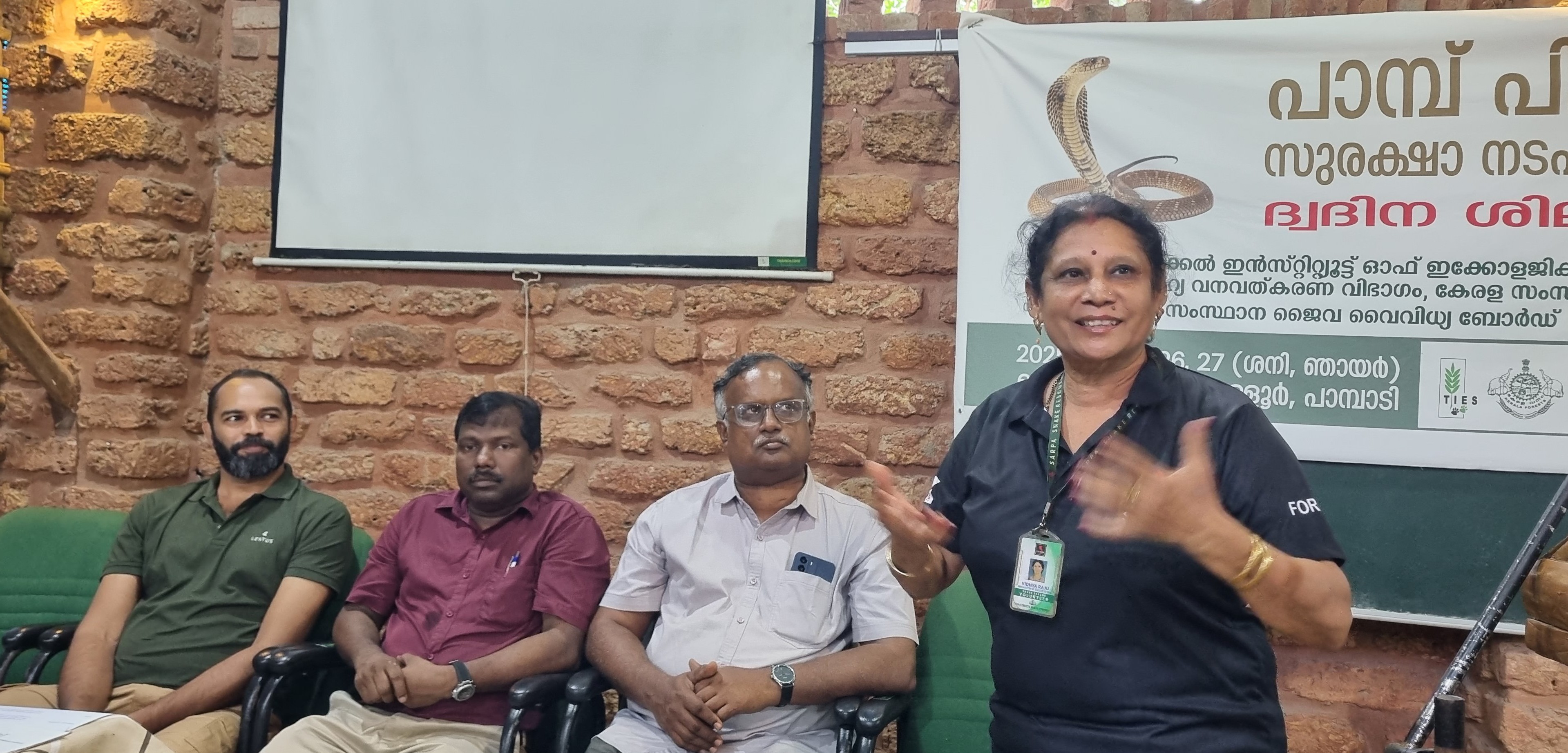 The Tropical Institute of Ecological Sciences (TIES), in collaboration with the Social Forestry Division of the Kerala Forest and Wildlife Department, successfully organized a two-day Workshop on Snake Rescue Protocol for Snake Rescuers in Kerala at the TIES campus in Velloor. The programme, supported by the Kerala State Biodiversity Board (KSBB), has been a pioneering initiative towards developing a comprehensive manual for snake rescuers since its inception in 2020.