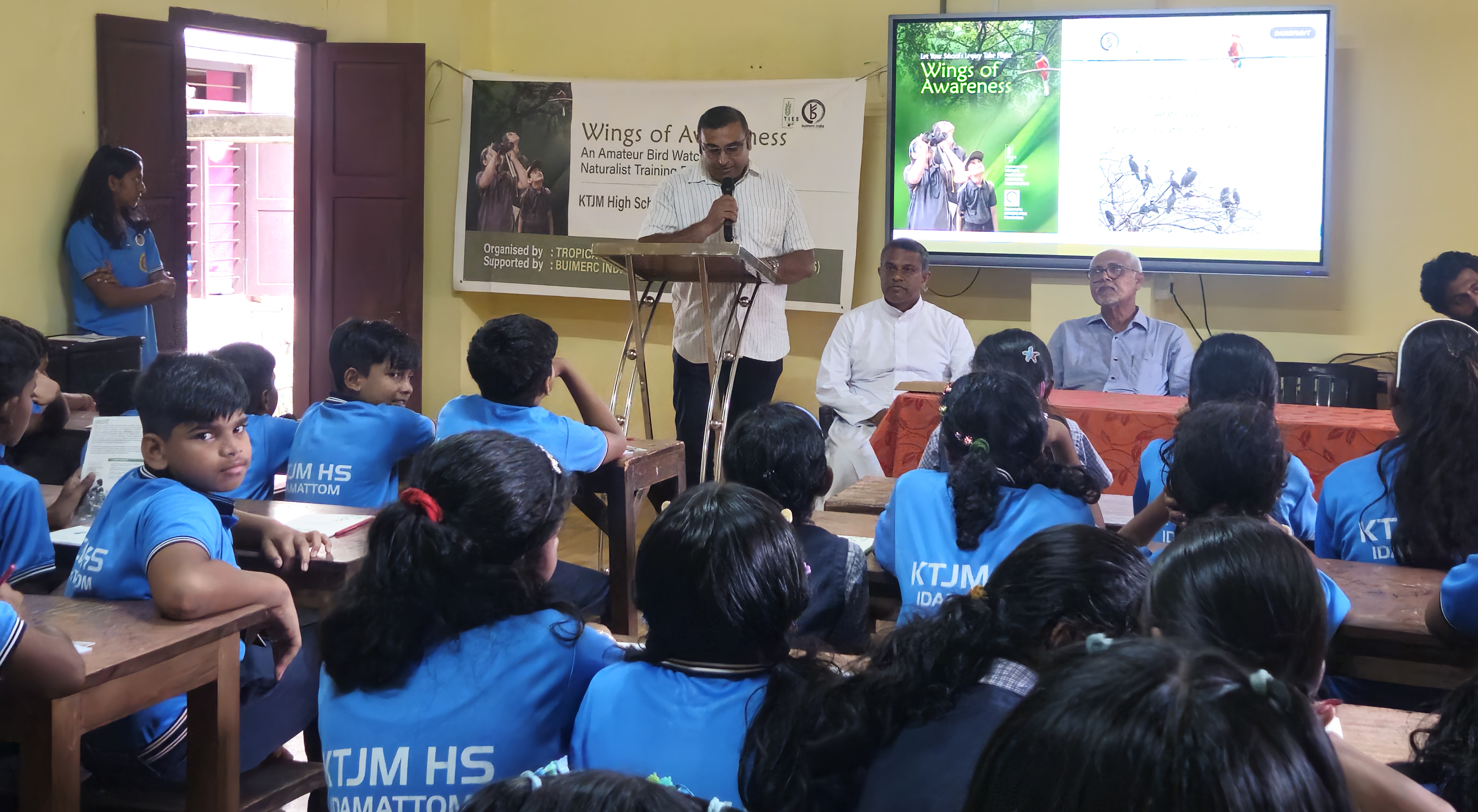 The Wings of Awareness orientation session was organized at KTJM High School, Idamattom, as part of the district-wide initiative implemented by the Tropical Institute of Ecological Sciences (TIES) conceived and supported by Buimerc India Foundation. The programme seeks to nurture environmental awareness in students by introducing them to the fascinating world of birds and the practice of bird watching. It aims to help learners build strong connections with nature and grow into future stewards of environmental conservation. The project will be implemented across 20 schools in Kottayam District, engaging around 1,000 students and 60 teachers.