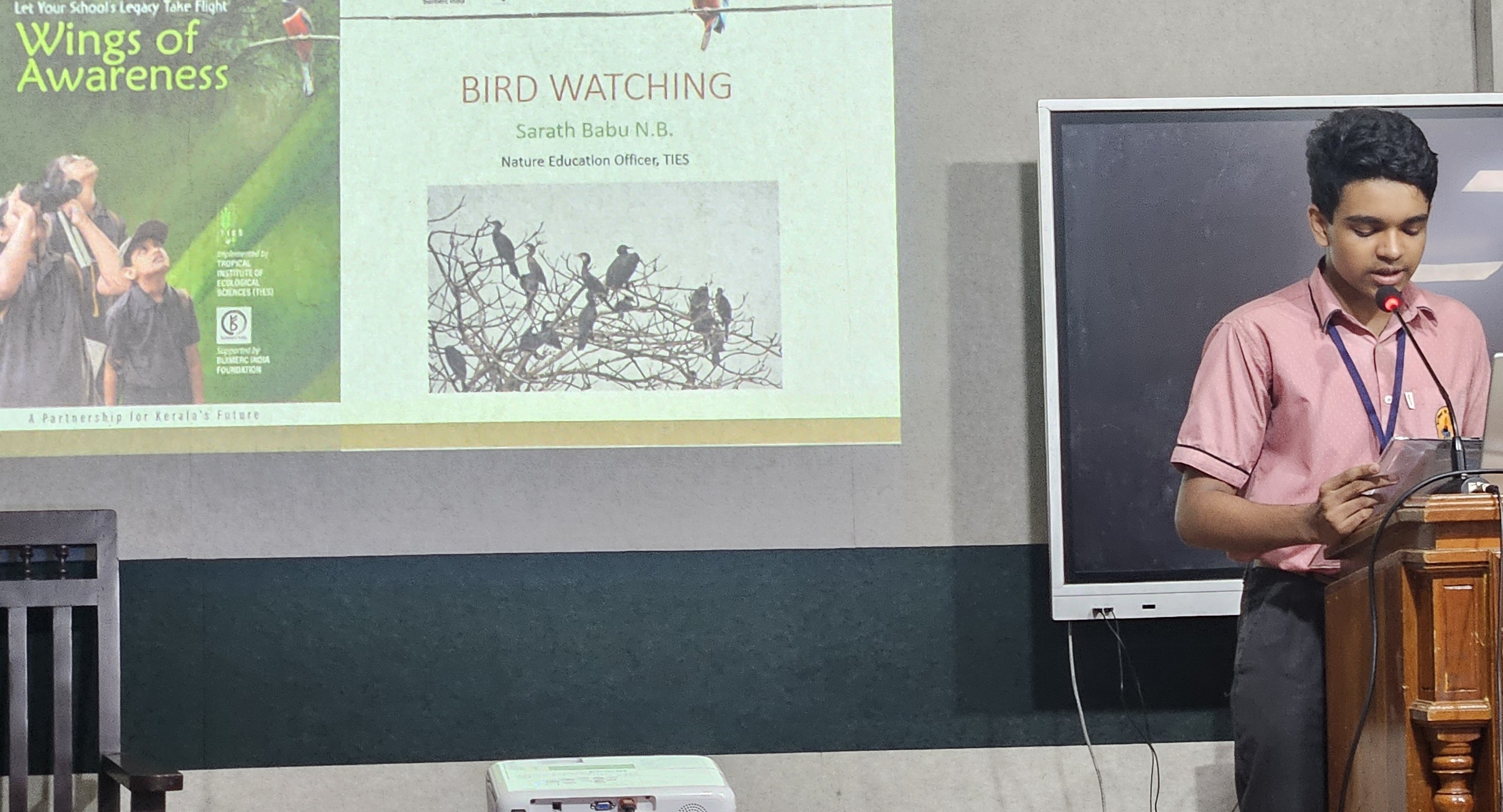 The introductory remarks were then presented by Dr. Punnen Kurian, Director of TIES. He explained the philosophy and vision of the Wings of Awareness programme, underlining how bird watching builds patience, focus, and curiosity while cultivating a love for nature. His message encouraged students to observe carefully and document their learnings in a systematic way.