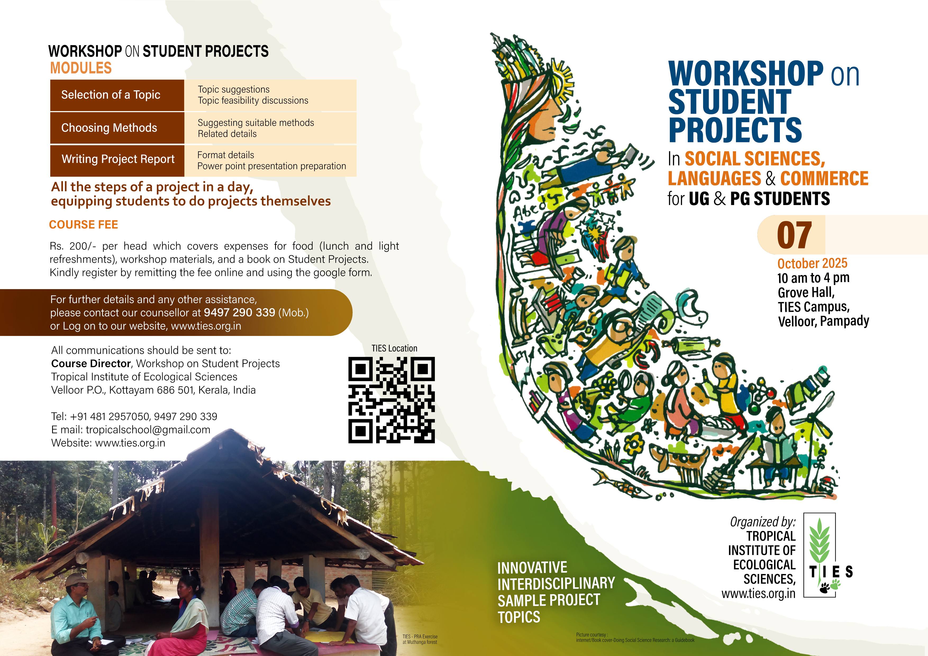 To deepen understanding of technical fundamentals and develop complex skills, students often engage in project-based learning, which encourages problem-solving and critical thinking. The Tropical Institute of Ecological Sciences (TIES) is organizing a one-day workshop on October 07, 2025, specifically for undergraduate and postgraduate students in Social Sciences, Languages, and Commerce. This workshop aims to equip students with the scientific methods necessary for conducting academic projects. It includes practical sessions on topic selection and setting objectives, ensuring that participants gain hands-on experience. The program fee is Rs. 200/-. This workshop is designed to help students evaluate their current skills, identify areas for growth, and embark on projects that align with their academic and professional goals.