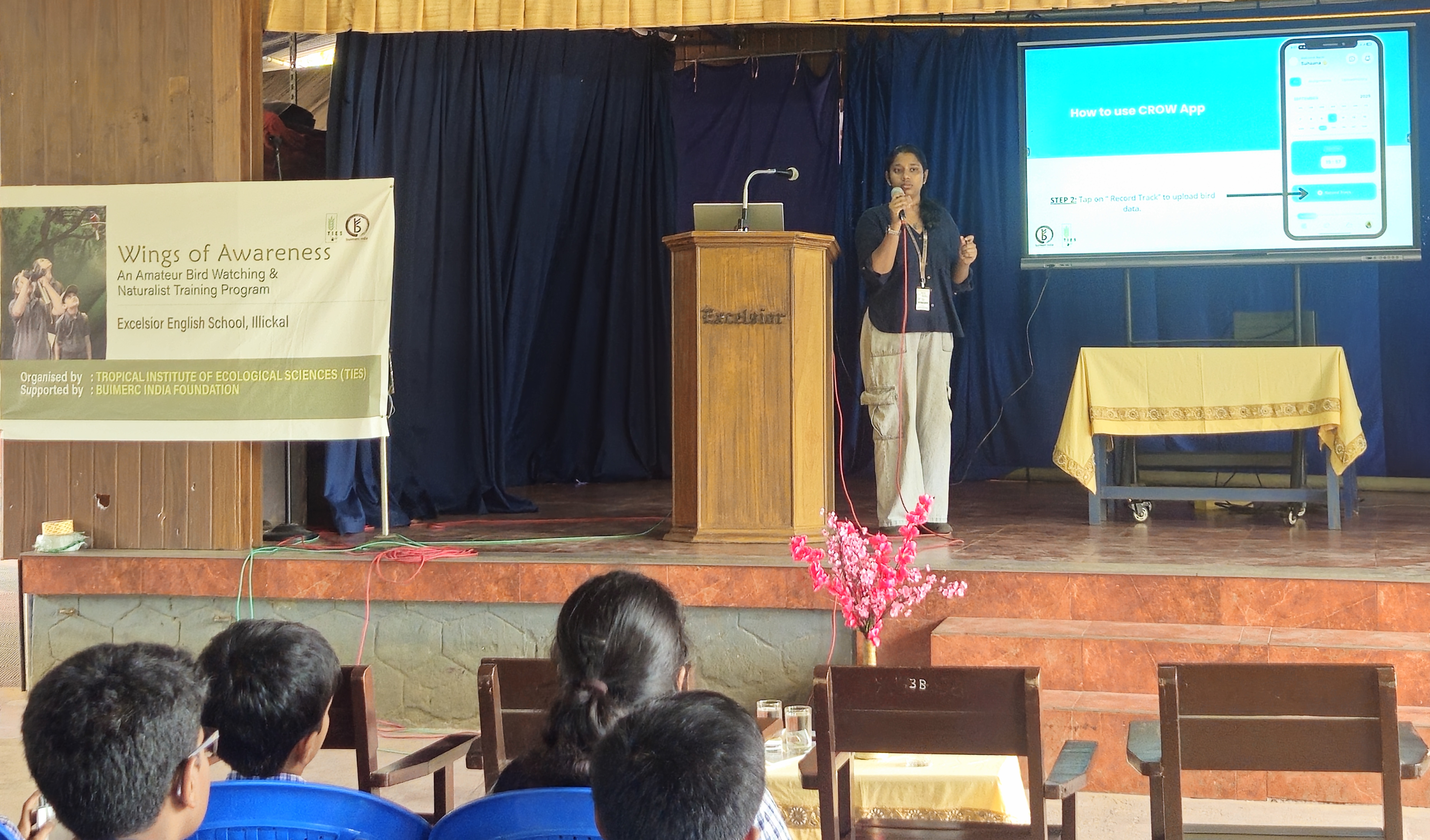 The final session was led by Ms. Suhaana, Project Officer of Wings of Awareness, who introduced the CROW (Children's Resources for Ornithology and Wilderness) app, a mobile application developed exclusively for the project. She explained its features and demonstrated how it could be used to record sightings, track observations, and contribute to citizen science initiatives. This segment encouraged students to blend technology with nature study in a meaningful way.