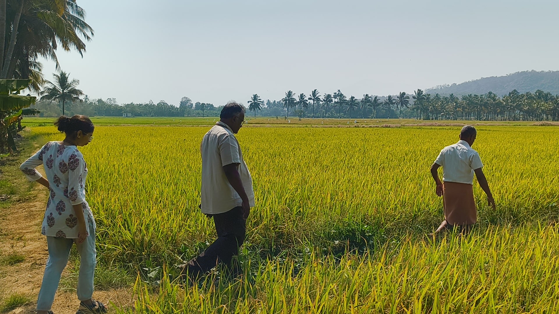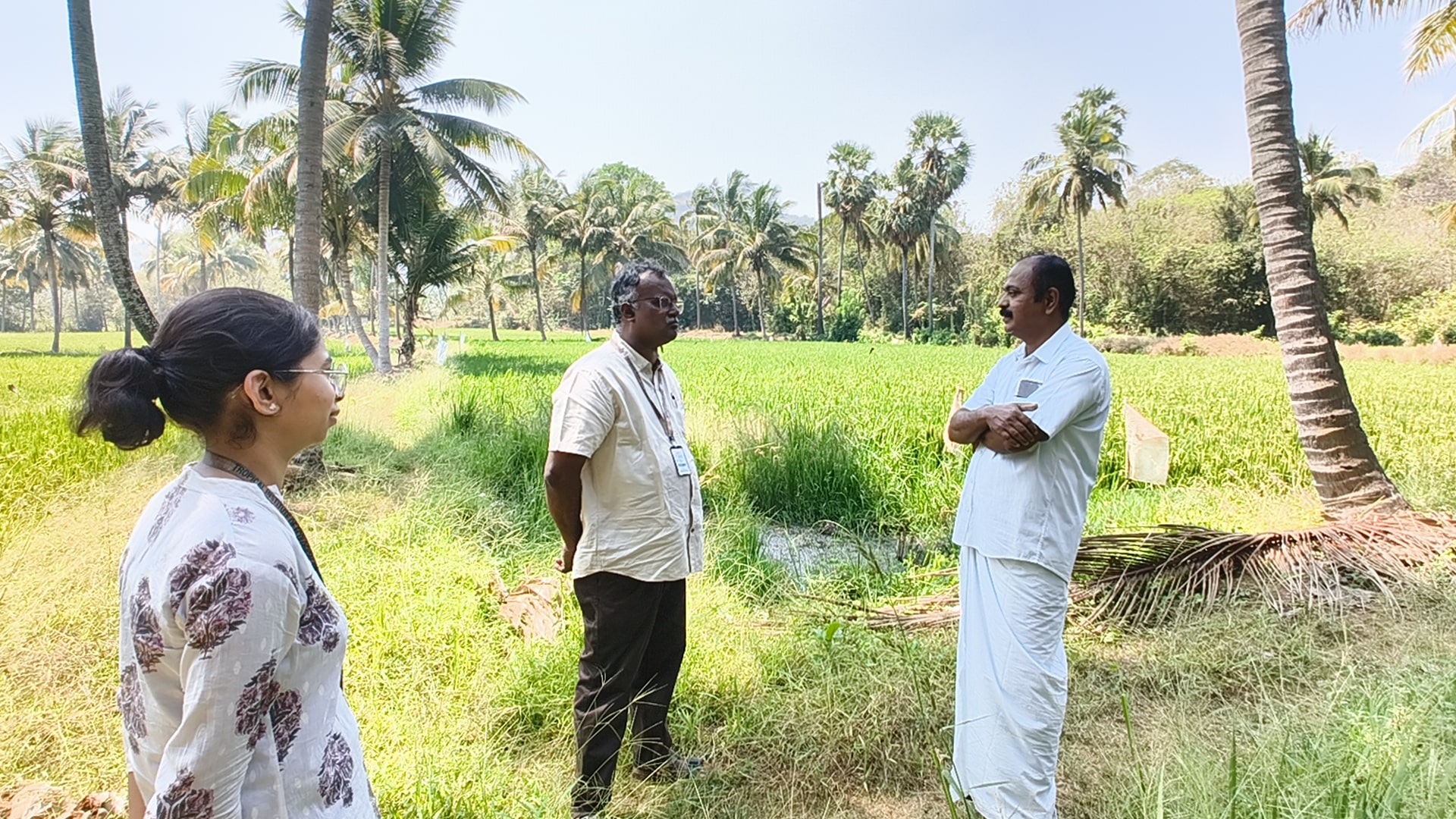 A field visit was conducted on February 21, 2025, to Koorodmann Padashekhara Samithi and Vallakkunnam Padashekhara Samithi in Alathur, Palakkad district, as part of the ongoing project to assess the impact of climate change on paddy cultivation. The visit was attended by Shri Gowthaman K.D., Secretary of Koorodmann Padashekhara Samithi, along with prominent farmers Shri Unnikuttan, Shri Muthu, and Shri Manoj, Secretary of Vallakkunnam Padashekhara Samithi.