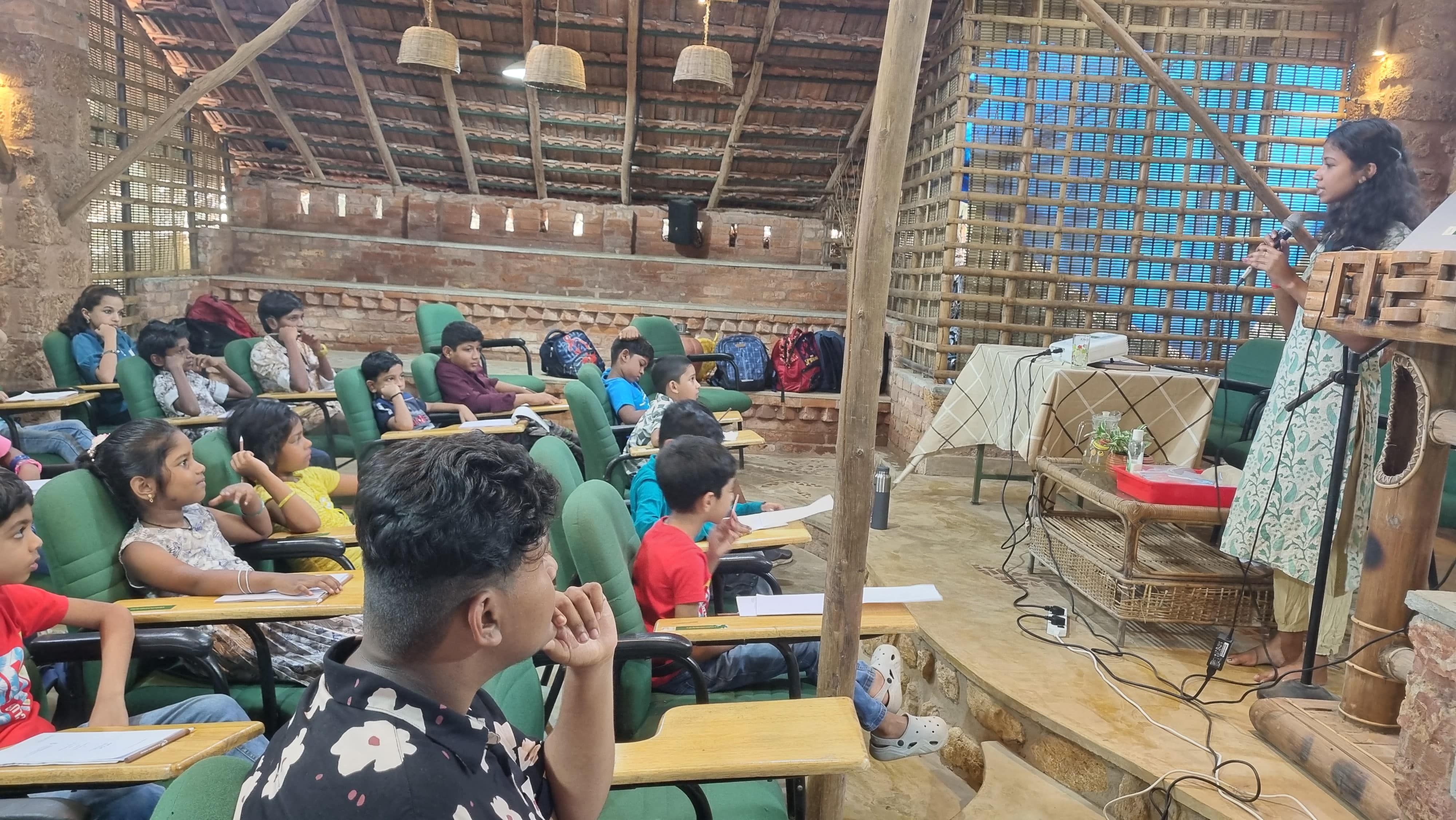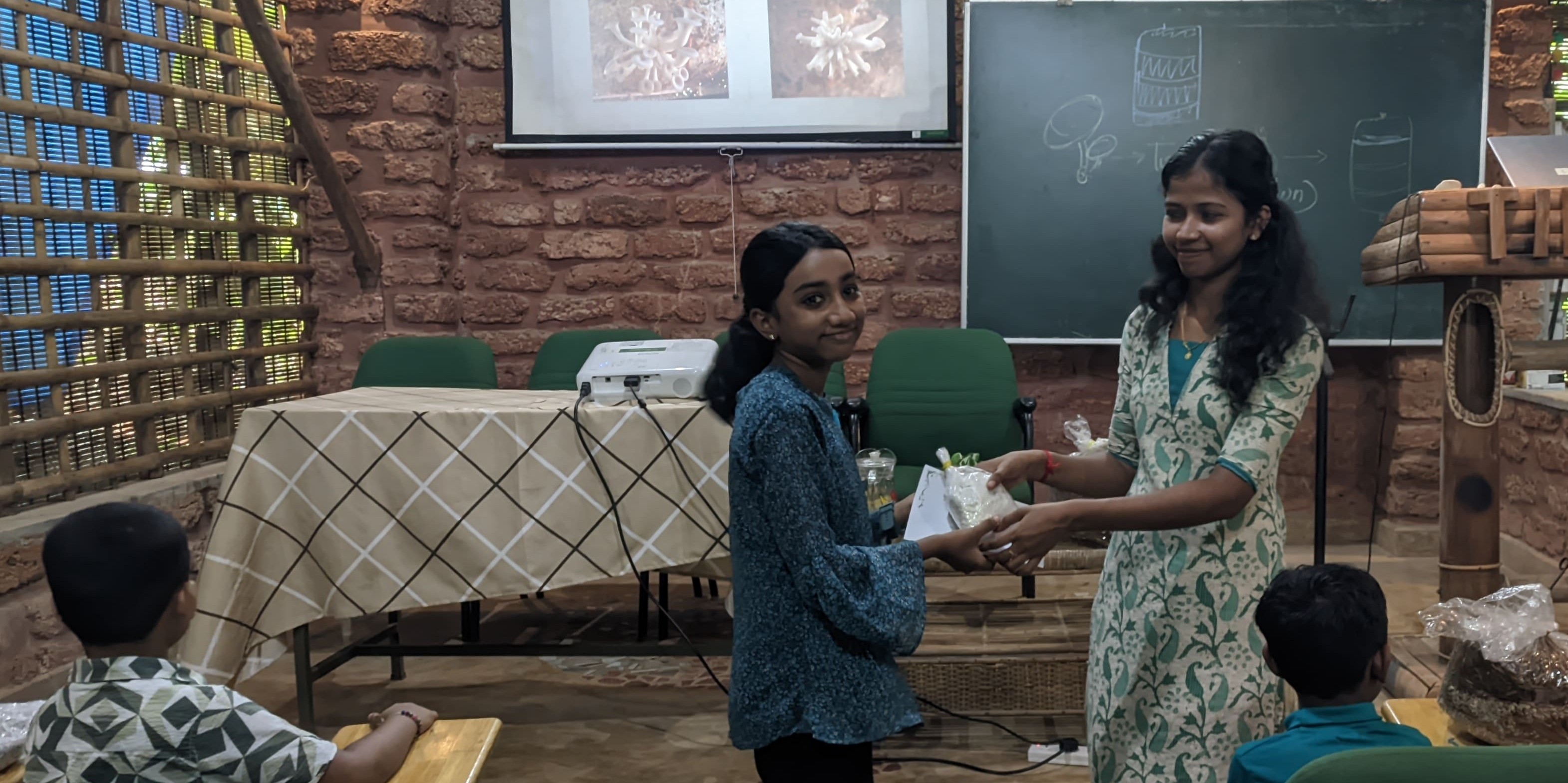 Following this, Ms. Arya Shaji, Project Assistant at TIES, led an immersive session on “Mushroom Cultivation Techniques.” Students explored different mushroom species, methods of cultivation, and environmental requirements. Ms. Arya also demonstrated spawn preparation, bed setting, and shared insights into disease management and preventive care for a healthy harvest.