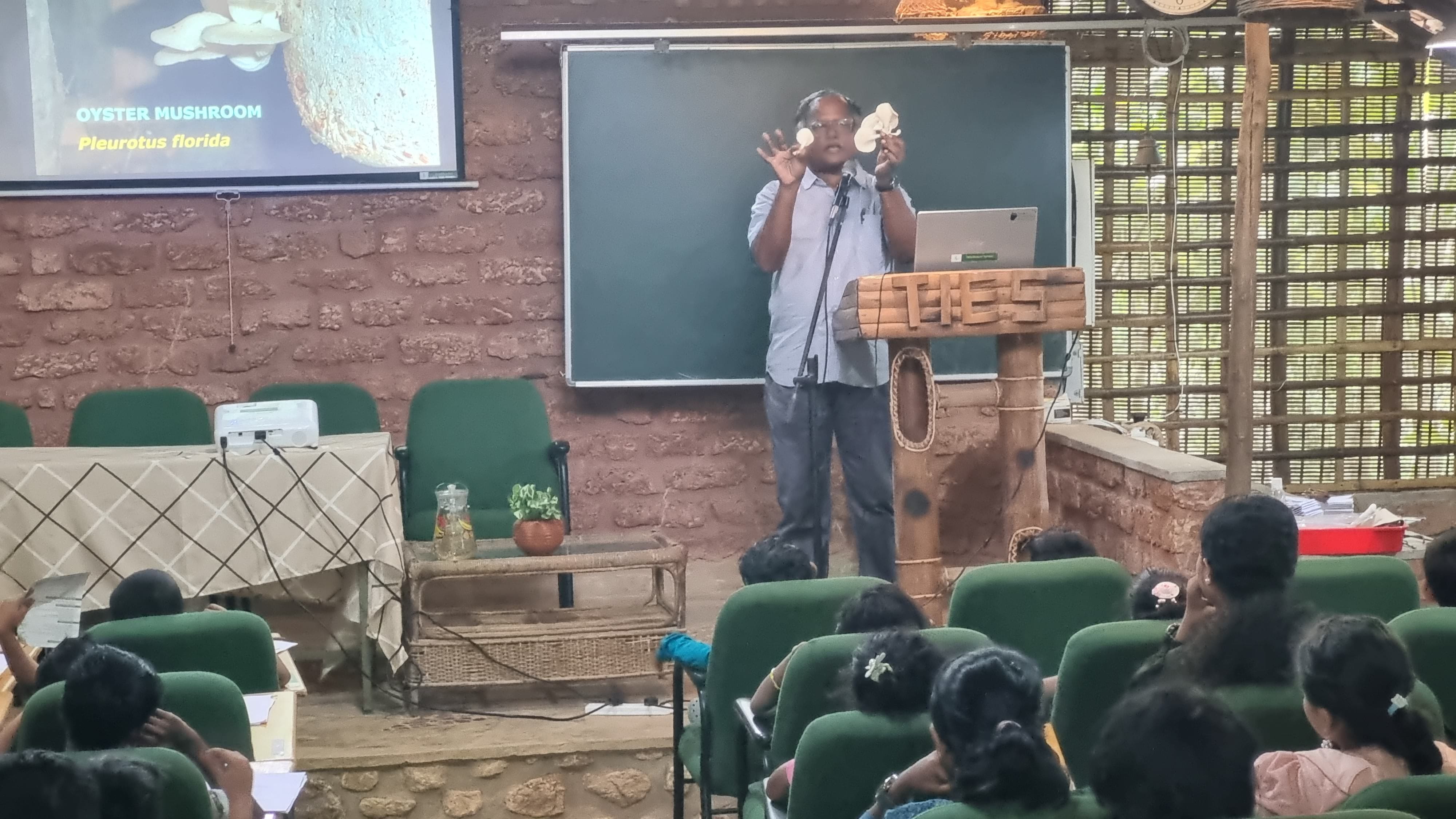 Dr. Punnen Kurian, Secretary of TIES, kickstarted the day with an introductory talk on “The Science of Mushroom Farming,” unraveling the biology and life cycle of mushrooms. The session sparked curiosity and laid the groundwork for deeper learning.