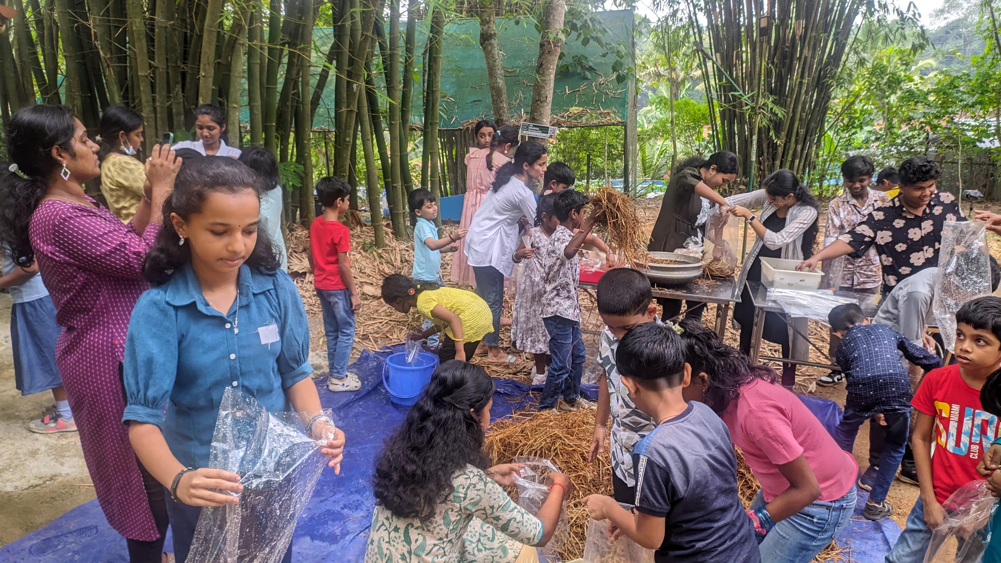 The one-day field-cum-lab study programme, held in collaboration with Sudarsanam Central School, Aranmula, and Malgudis International School, Chengannur, introduced students to the fascinating world of sustainable farming. Designed to nurture curiosity and equip young learners with practical knowledge, the session focused on the essentials of mushroom cultivation.