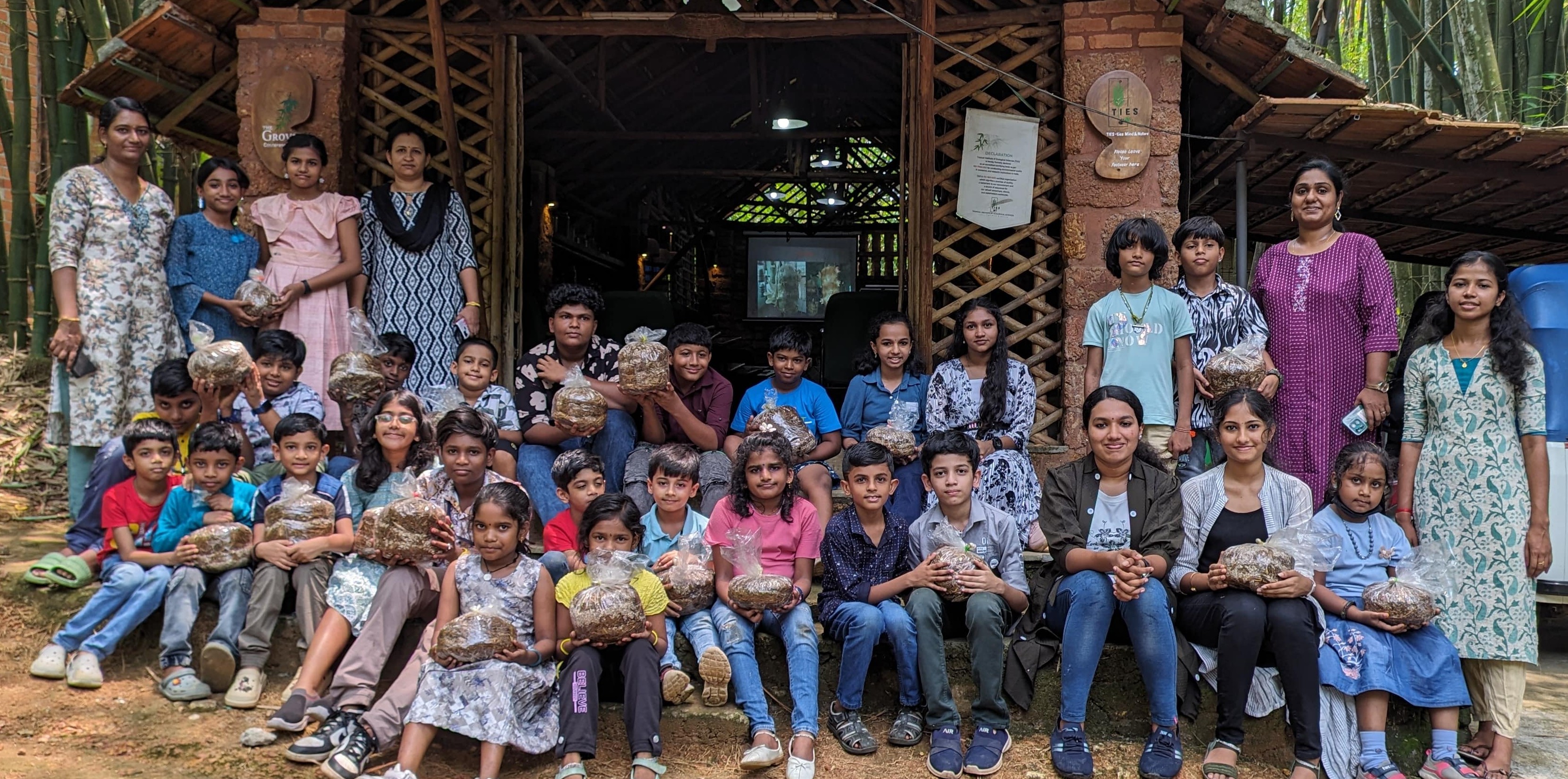 “Mushrooms for the first time!” exclaimed Dhruv Krishna N. S., a 1st-grade student from Sudarsanam Central School, Aranmula, as he marveled at the curious fungi during a hands-on training session. Dhruv was one among 28 enthusiastic students who took part in a unique mushroom farming experience, organized under the Enjoy Learning Skills programme of TIES.