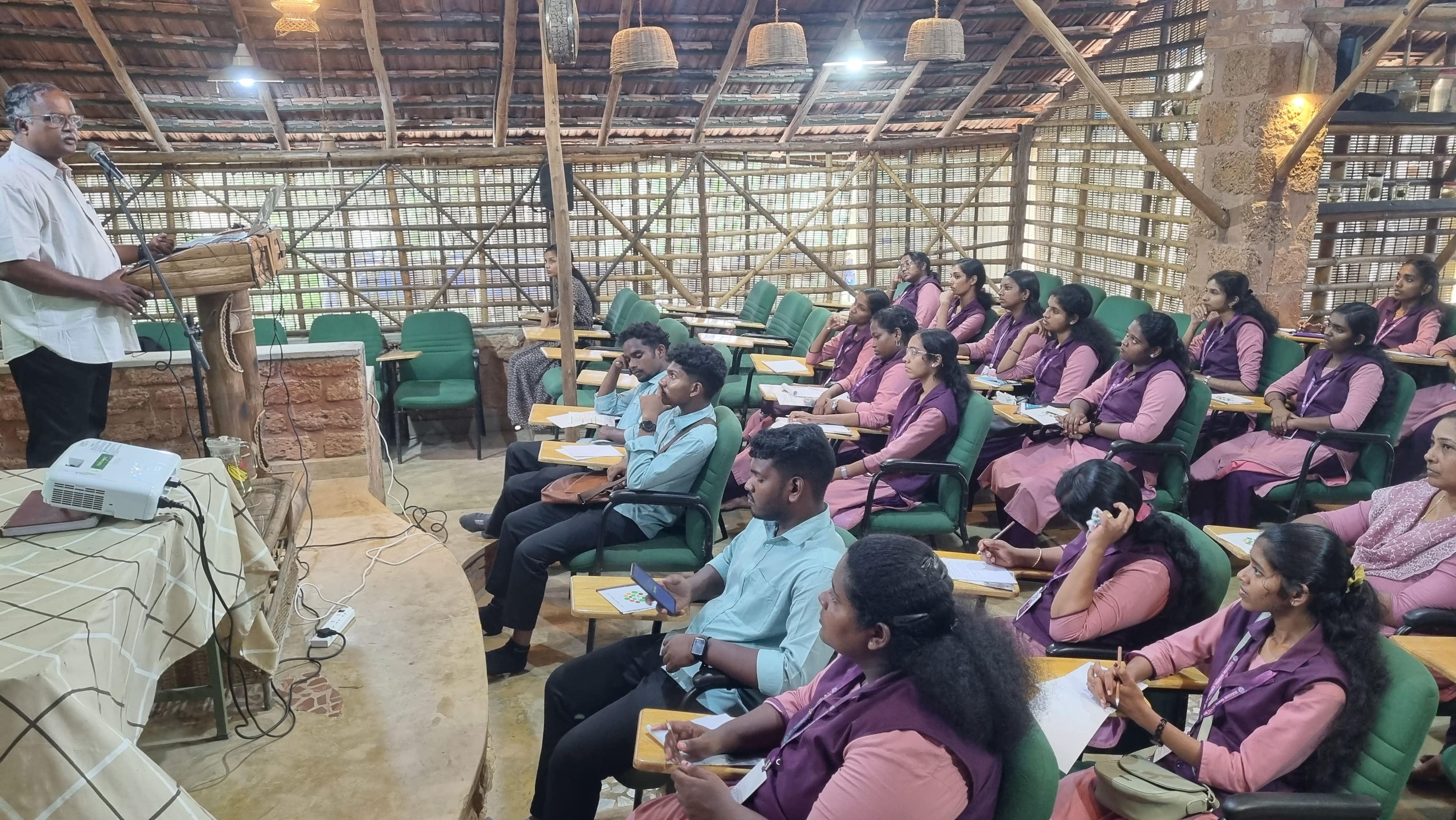 The day concluded with a guided building tour led by Ms. Anoopa Mathews, PRO of TIES. Students explored the institute’s eco-friendly, low-cost, and energy-efficient infrastructure and were introduced to home composting methods—providing practical tools for implementing sustainable practices in everyday life. The participants were also given specific topic to as assignment to evaluate their understanding on various areas like biodiversity, eco-friendly architecture and biowaste management techniques.