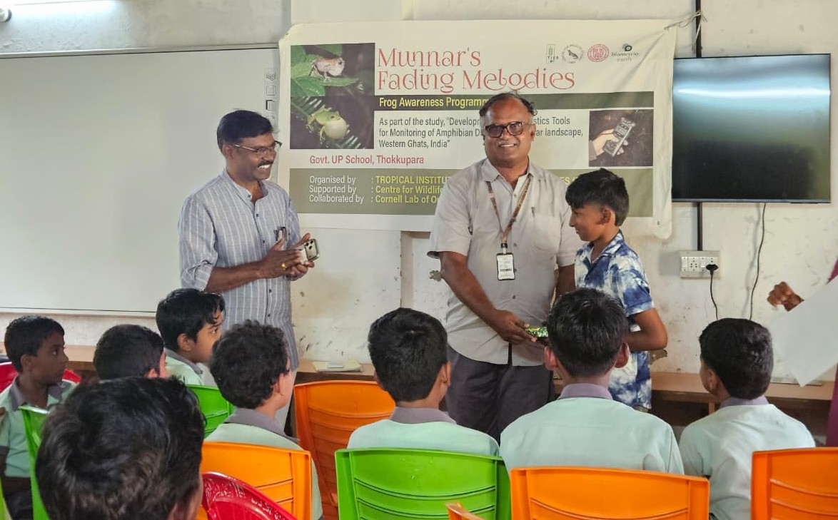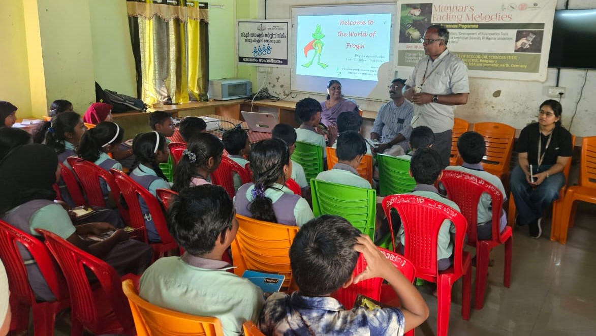 TIES recently held an exciting frog-conservation awareness session at Govt. UP School, Thokkupara, as part of the project “Development of Bioacoustics Tools for Monitoring Amphibian Diversity in the Munnar Landscape.”