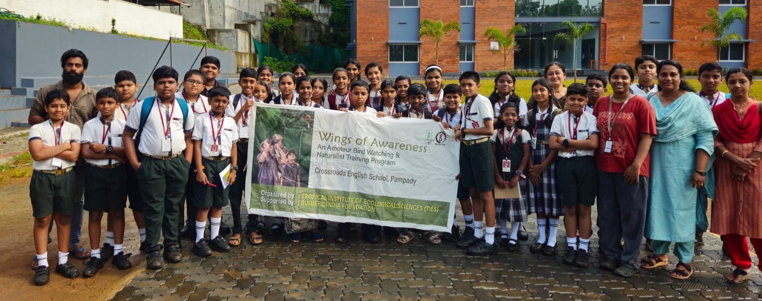 As part of the Wings of Awareness initiative, an amateur bird watching and naturalist training programme implemented by the Tropical Institute of Ecological Sciences (TIES) conceived and supported by Buimerc India Foundation, a bird watching session was conducted at Crossroads English School, Pampady. The programme seeks to help students develop a close relationship with nature and foster awareness about biodiversity through direct field experiences.