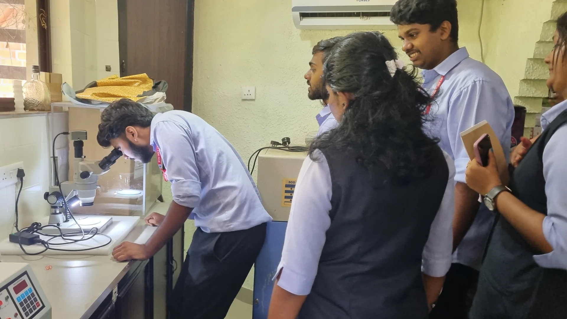 After the session, students participated in a campus walk to explore eco-friendly architecture and sustainable practices. Highlights included demonstrations of household waste management techniques and a basic introduction to water quality analysis, underscoring the importance of responsible environmental stewardship.
