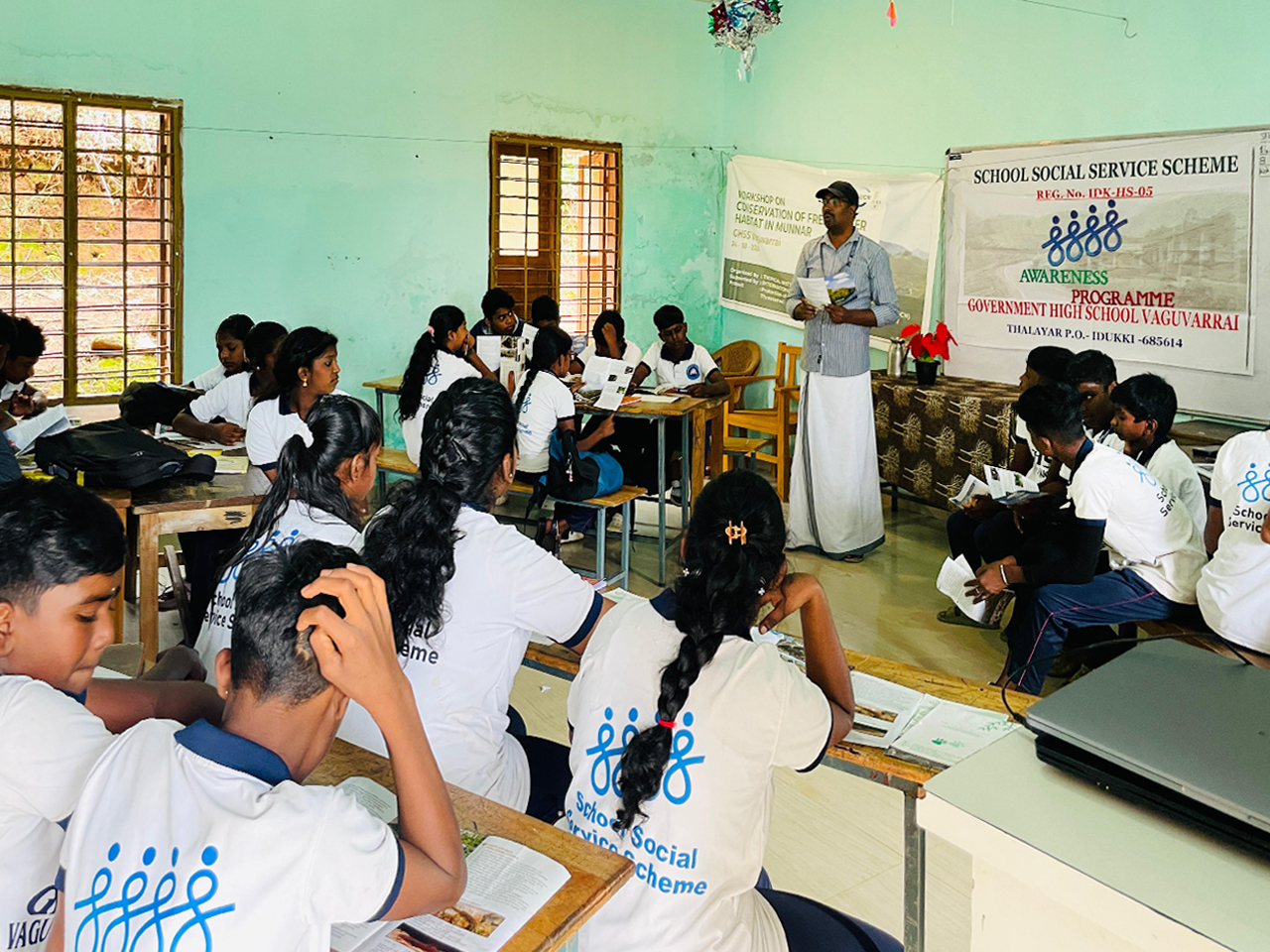 The workshop was inaugurated by Mr. Selvin, Headmaster of GHSS Vaguvarrai, who emphasized the vital role students play in environmental conservation efforts. Project Officer Mr. Praful V. Panicker welcomed the participants, while faculty member Ms. Manimeghala presided over the session.