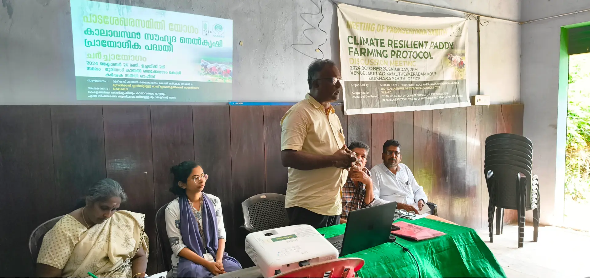 On October 26, 2024, an orientation workshop on climate-resilient paddy farming protocols was held in Irinjalakkuda, Thrissur. Conducted by TIES in partnership with the Muriad Kayal Thekkepadam Karshaka Samithi, the workshop is part of a NABARD-funded initiative titled “Study on the Impact of Climate Change on Rice Cultivation in Kerala and the Development of Adaptation and Mitigation Strategies.” This project seeks to address critical issues in rice farming by identifying and prioritizing farmers' concerns and developing a climate-smart farming protocol based on effective mitigation and adaptation practices.