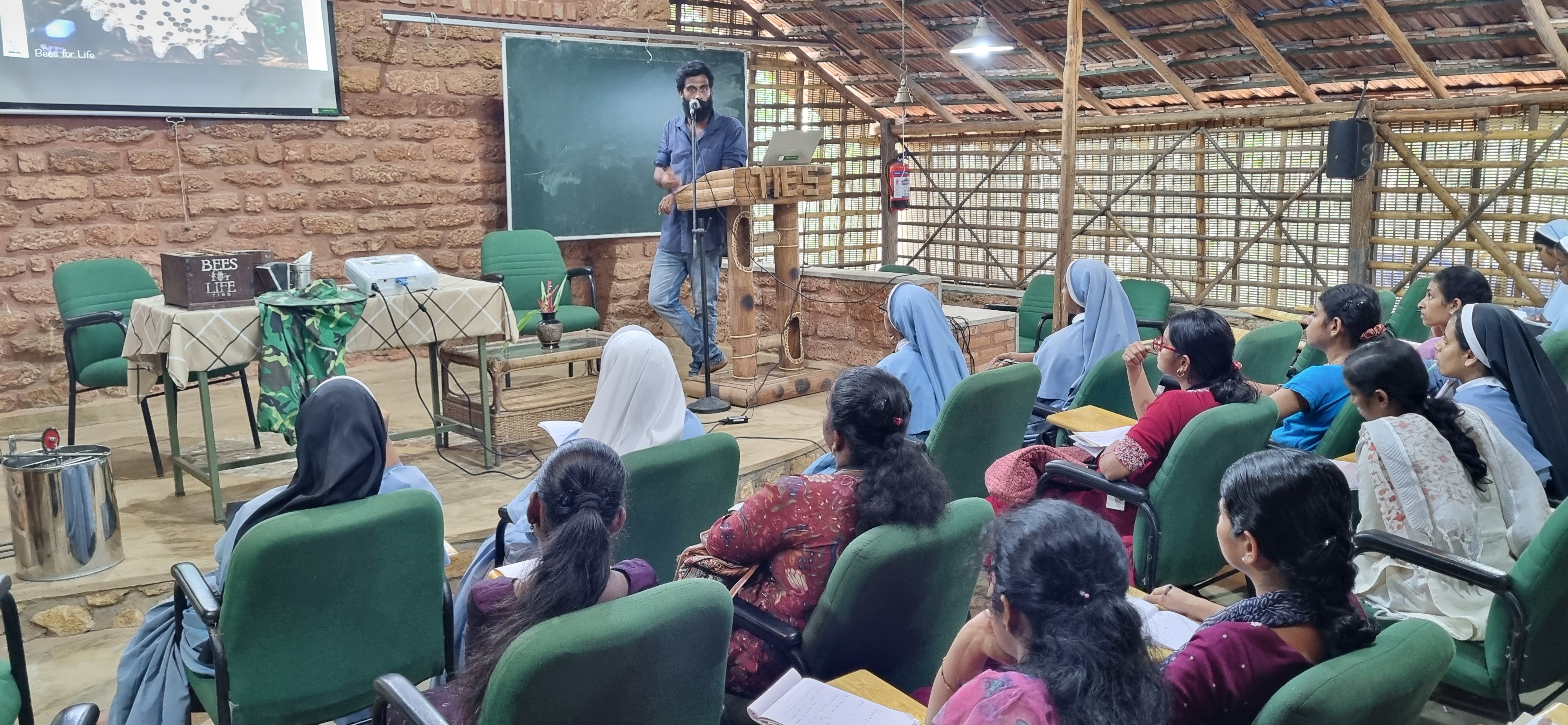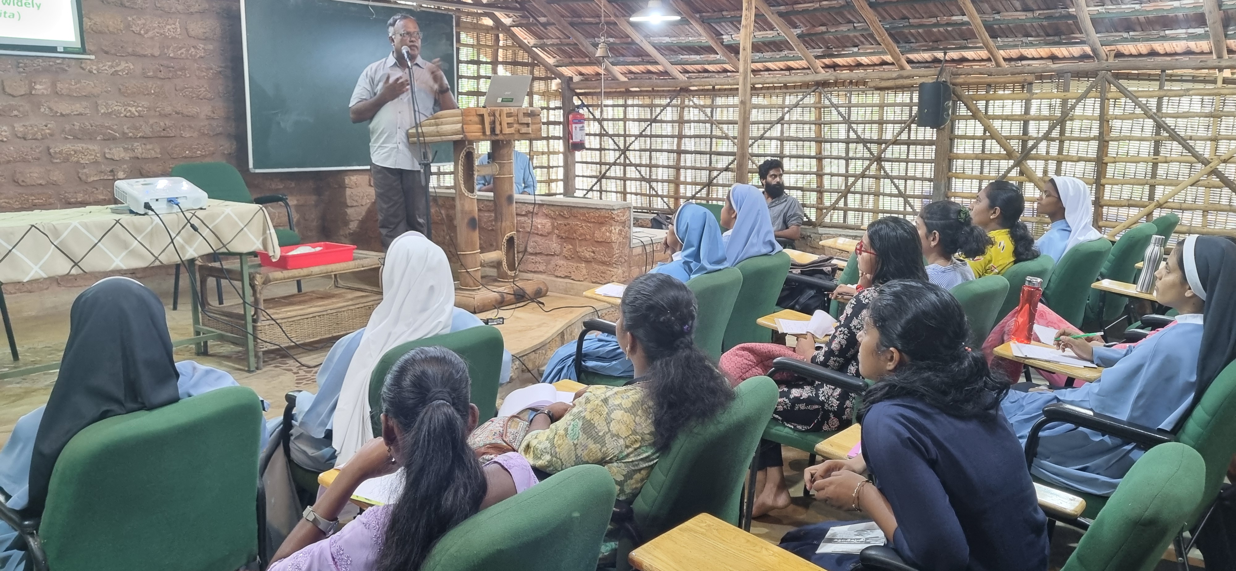 Upcoming teachers benefit greatly from environmental awareness, enabling them to instill sustainability and responsibility in students. Integration of environmental education fosters critical thinking and empathy, shaping informed citizens capable of tackling global environmental challenges. During a three-day Enjoy Teaching session for St. Teresas TTI, Vazhapally, TTI students were immersed in various aspects of environmental education, from basic etiquette to practices such as apiculture, homewaste management, and mushroom farming. Enjoy Teaching aims to imbue a nature-oriented approach to teaching, transforming the entire learning process across subjects. The training equips teachers to associate current environmental issues with classroom teaching, raise awareness of our natural heritage's significance, develop environmental modules for subjects, and cultivate environmentally responsible students and communities. Alongside the training, a nature walk and hands-on experience in creating mushroom beds and laboratory techniques were provided. The training was attended by 65 students. The sessions were conducted by Dr. Punnen Kurian, Secretary; Sarath Babu N. B., NEO; Anju Ajikumar, Laboratory Assistant; and Carolyn Merin Philip, Project Assistant, all from TIES.