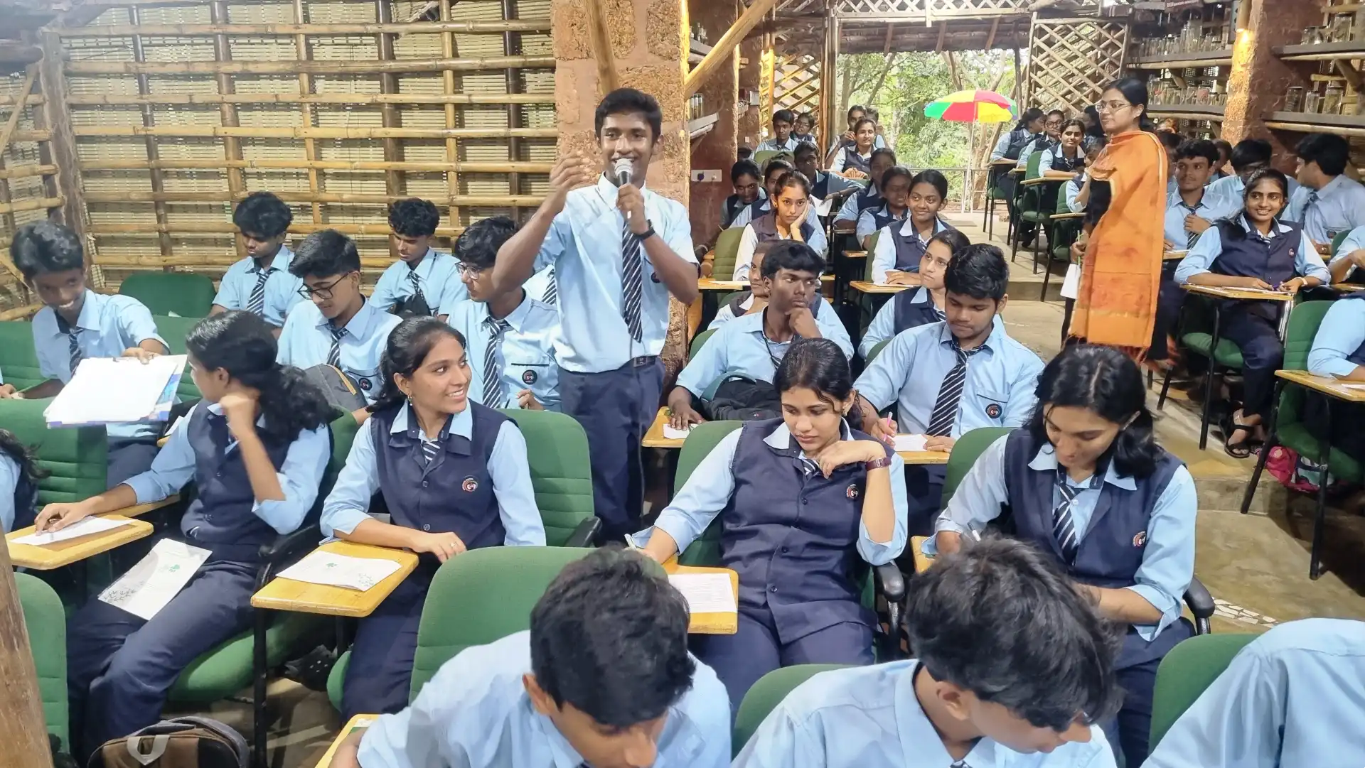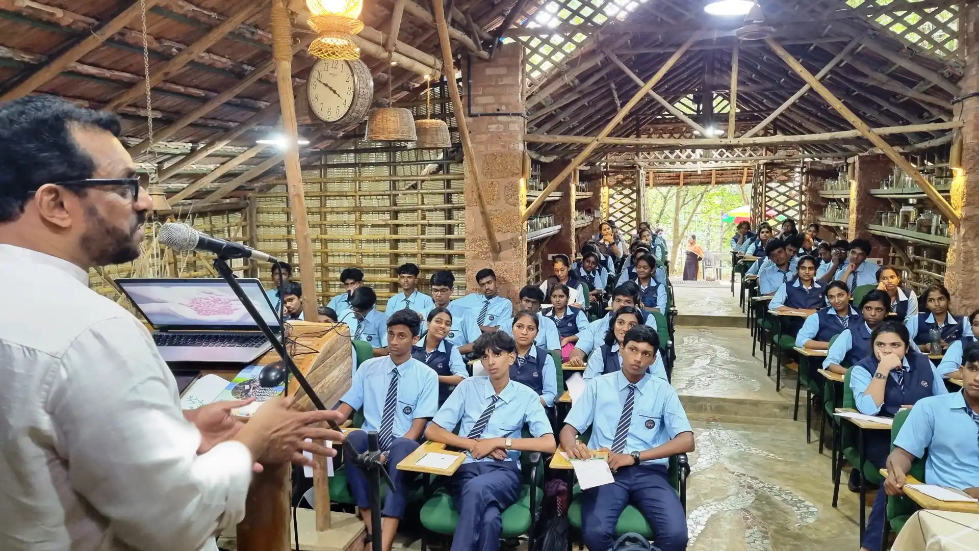 Following this enlightening session, students embarked on a campus walk, an immersive experience aimed at familiarizing them with eco-friendly architecture and sustainable practices. Highlights of the walk included insights into household waste management techniques and the basics of water quality analysis, all aligned with the principles of responsible environmental stewardship.