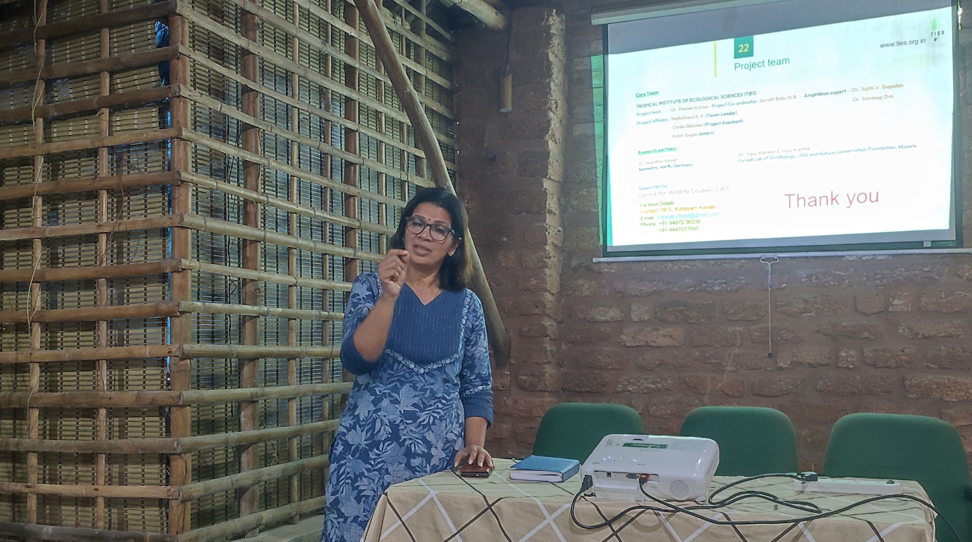 The exit meeting for the project “Development of Bioacoustics Tools for Monitoring of Amphibian Diversity in the Munnar Landscape, Western Ghats, India”, funded by the Centre for Wildlife Studies (CWS) and implemented in collaboration with the Cornell Lab of Ornithology, USA, and Biometrio Earth, Germany, was held at TIES on 29 November 2025. The primary objectives of the project, which included the taxonomical identification of endemic and endangered species and the development of a bioacoustic tool for identifying selected frog species as a pioneering initiative, were successfully completed
