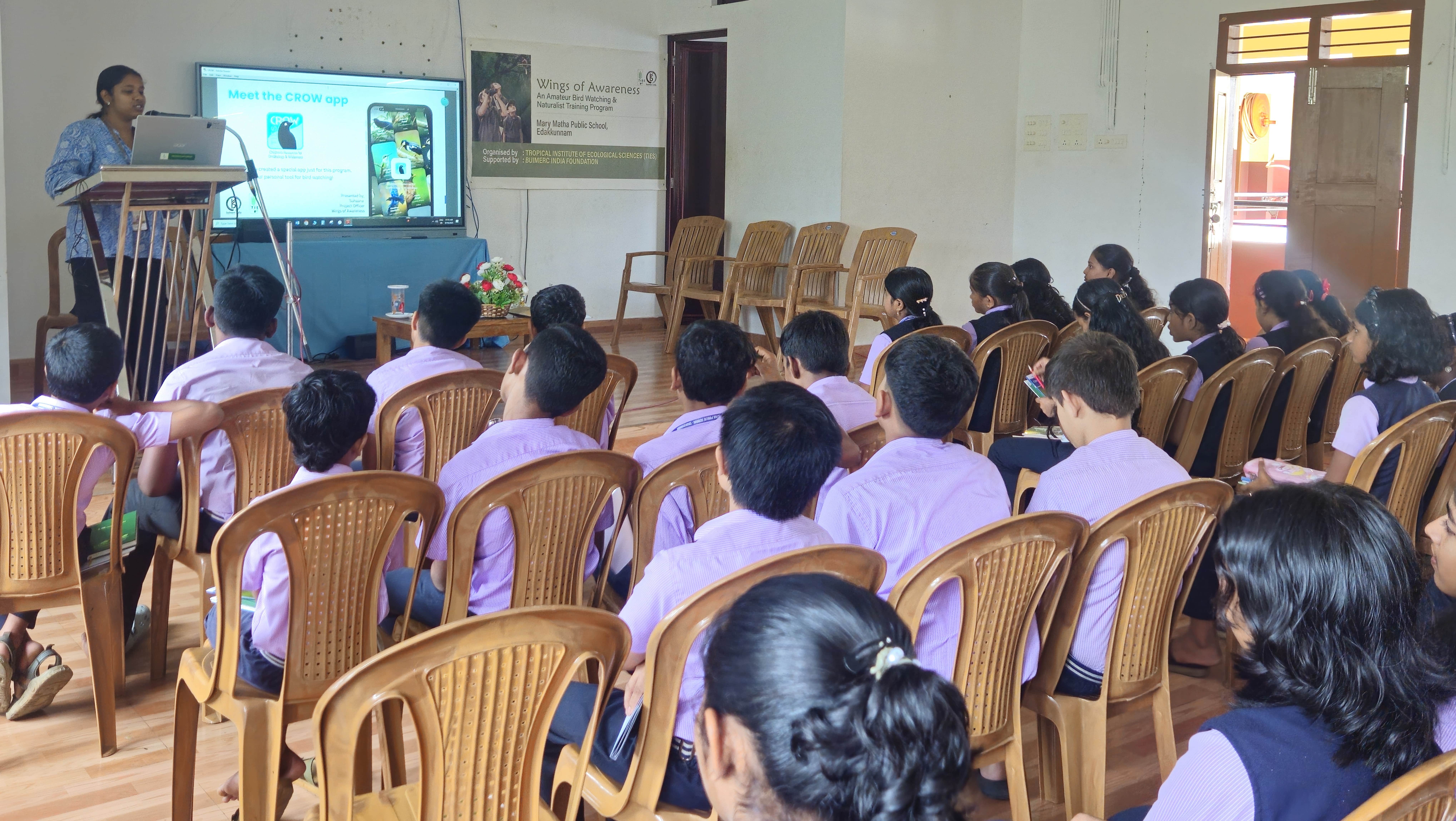 The Wings of Awareness orientation session was conducted at Mary Matha Public School, Edakkunnam, as part of the district-wide initiative organized by the Tropical Institute of Ecological Sciences (TIES) conceived and supported by Buimerc India Foundation. The programme is designed to inspire students to connect with nature through bird watching and naturalist training, nurturing environmental awareness and conservation values among young learners. The project will be implemented across 20 schools in Kottayam District, engaging around 1,000 students and 60 teachers.