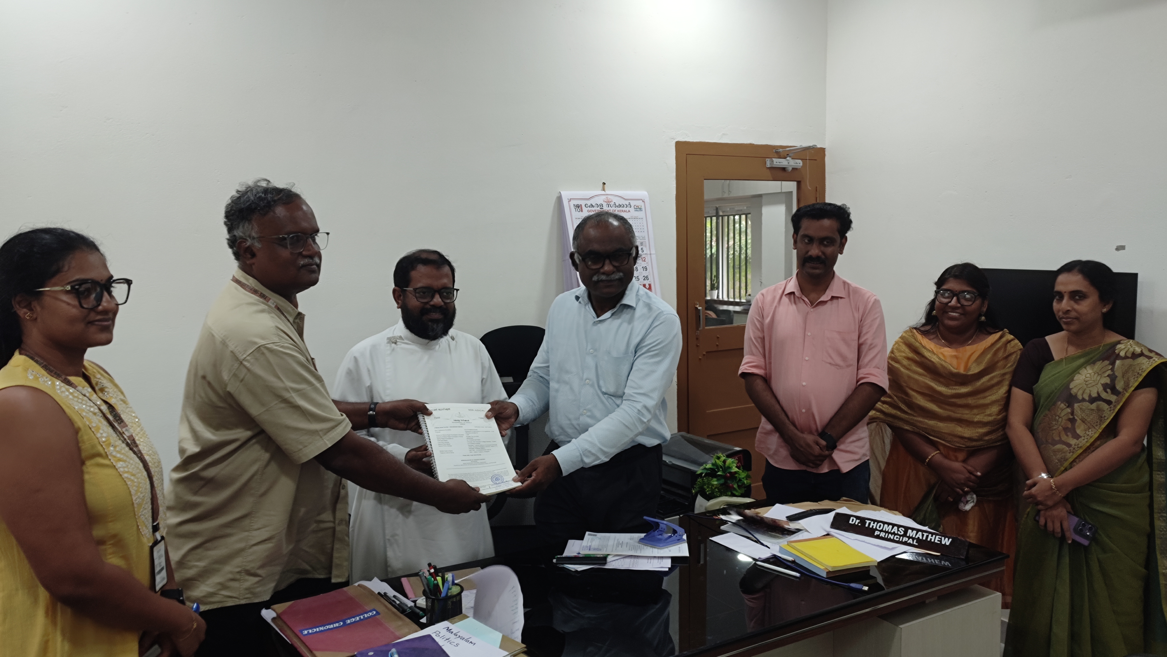 Mar Dionysius College Pazhanji has launched an ISO-standard Green Audit, showcasing its strong dedication to sustainability. This extensive audit, aimed at facilitating NAAC accreditation, covers a broad spectrum of environmental aspects, such as environmental sustainability, management of water resources, conservation of biodiversity, occupational health and safety, analysis of carbon footprint, and energy efficiency. Its wide-ranging focus prepares the College for potential recognition through various national and international accreditations and accolades. A notable component of this initiative was the official signing of a Memorandum of Understanding (MoU) between Mar Dionysius College Pazhanji and the Tropical Institute of Ecological Sciences (TIES). The MoU, signed by Dr. Thomas Mathew, Principal of Mar Dionysius College Pazhanji, and Dr. Punnen Kurian, Director of TIES, establishes a framework for collaboration that enables TIES to perform the Green Audit and support the implementation of sustainability initiatives on campus. The signing ceremony was attended by Prof. Dr. Rejimon P M (Vice-principal), Dr. Raji A M (IQAC Coordinator), Lt. Dr. Benson (NACC Coordinator), Dr. Vibitha Kochamani, and Dr. Asha S Kutty (Green Audit Coordinator).