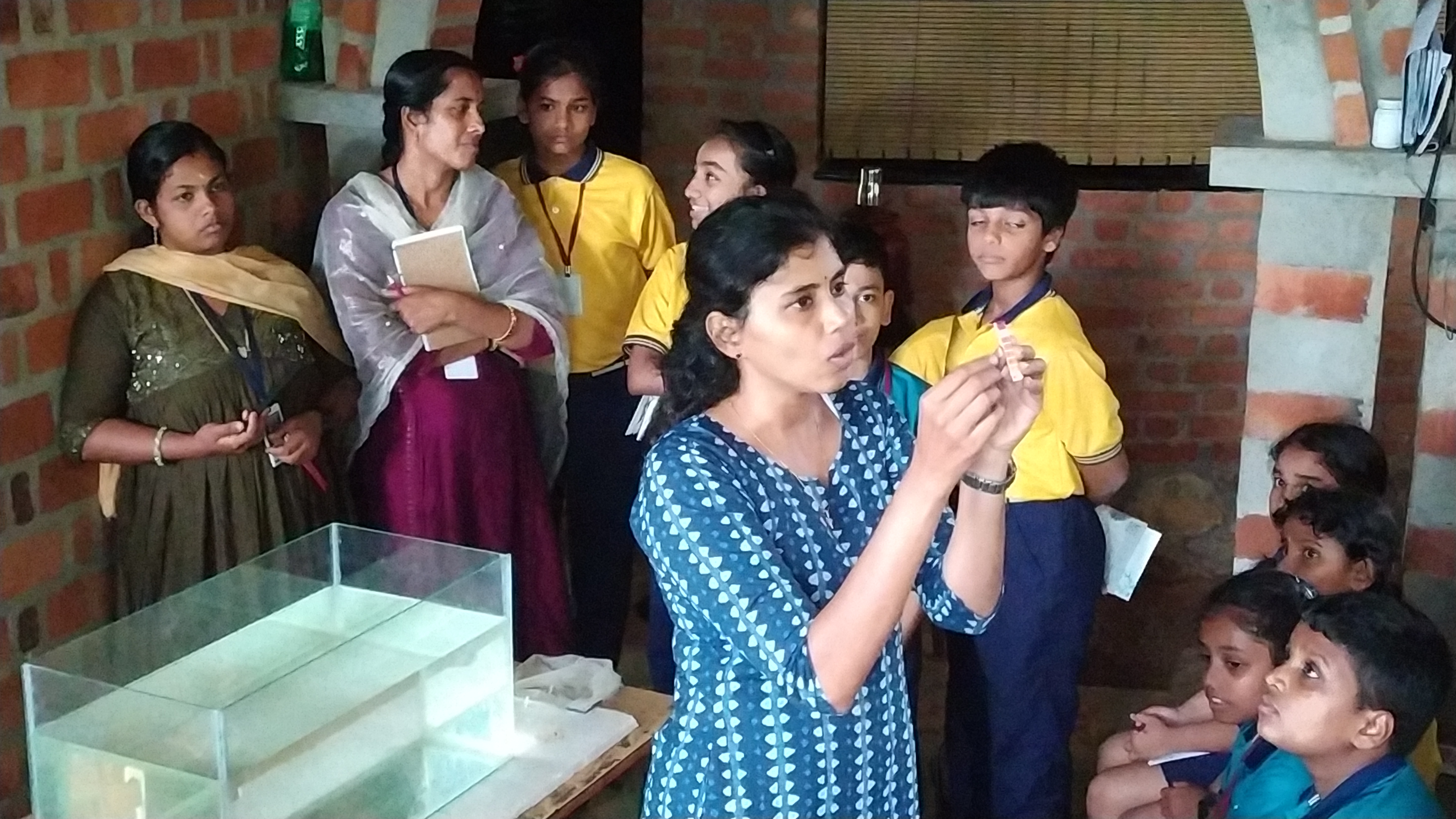 A live demonstration was conducted on aquarium setup using pebbles, plants, filters, and other essentials, along with an introduction to various common ornamental fish species, and the testing of water pH using pH paper was also demonstrated.