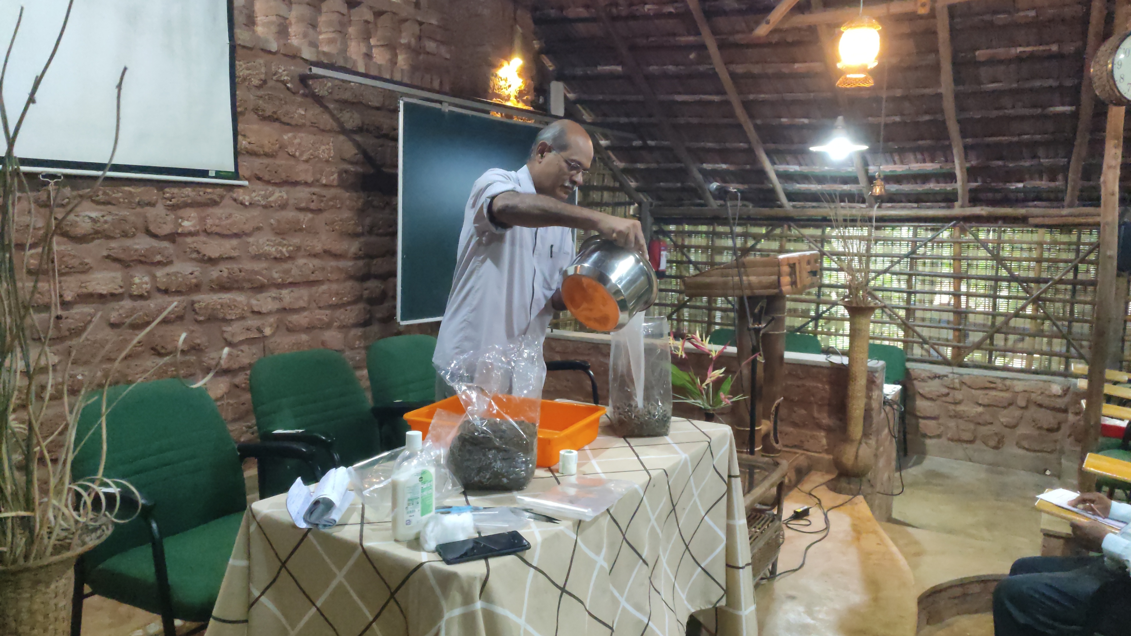 The sessions were led by experts including Dr. Punnen Kurian, Director of TIES; Prof. Sunny Jose, retired Head of the Department at St. Xavier’s College, Vaikom; and Ms. Arya Shaji, Project Assistant at TIES. During the practical workshop, each participant had the opportunity to prepare their own pellet-based beds, reinforcing the theoretical knowledge through real-world application.