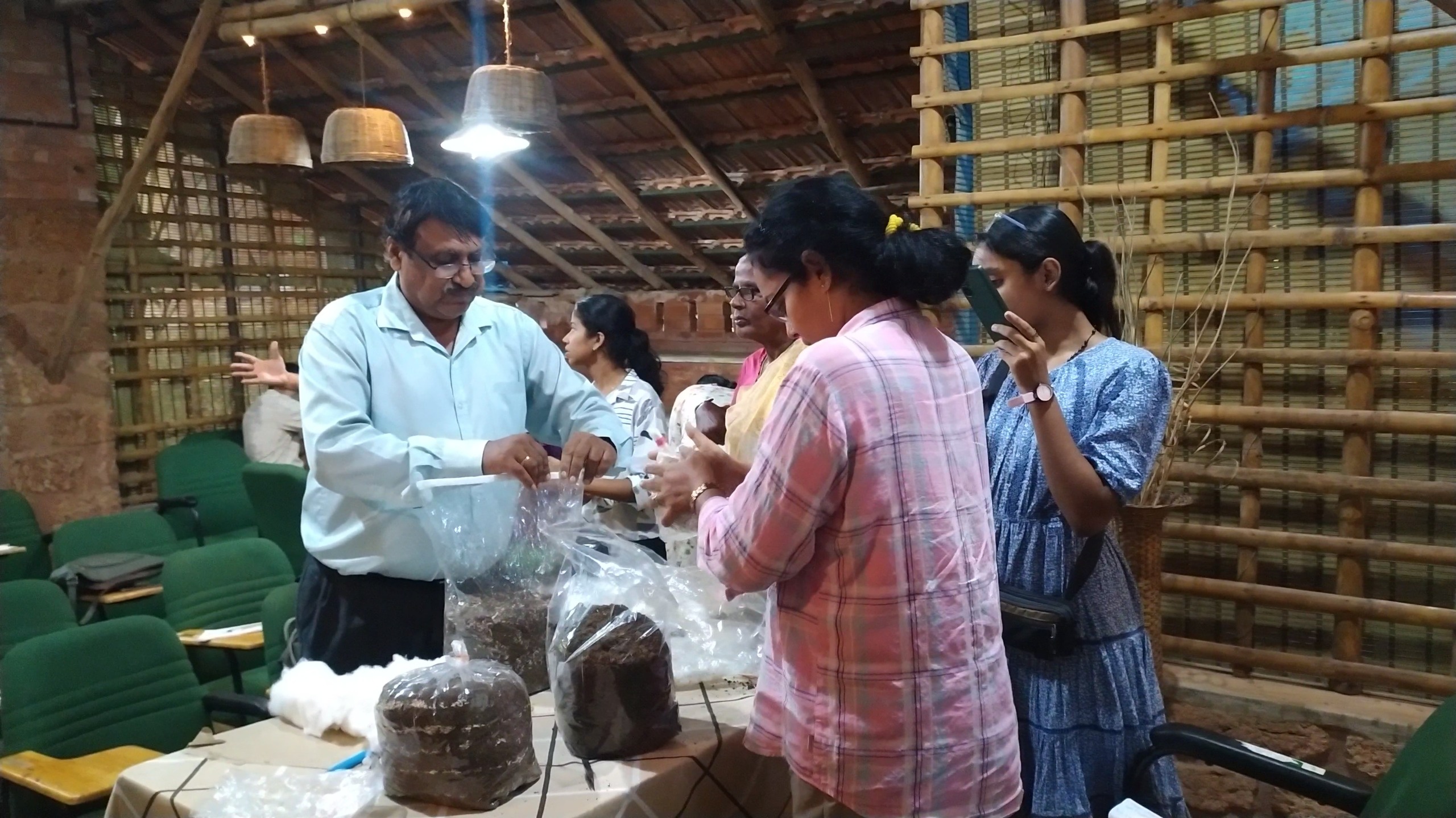 The training was structured into two segments: a theory session and a hands-on workshop. The theoretical portion covered essential topics including an introduction to mushrooms, tissue culture, mother spawn and spawn production, bed preparation techniques, and post-harvest technologies.
