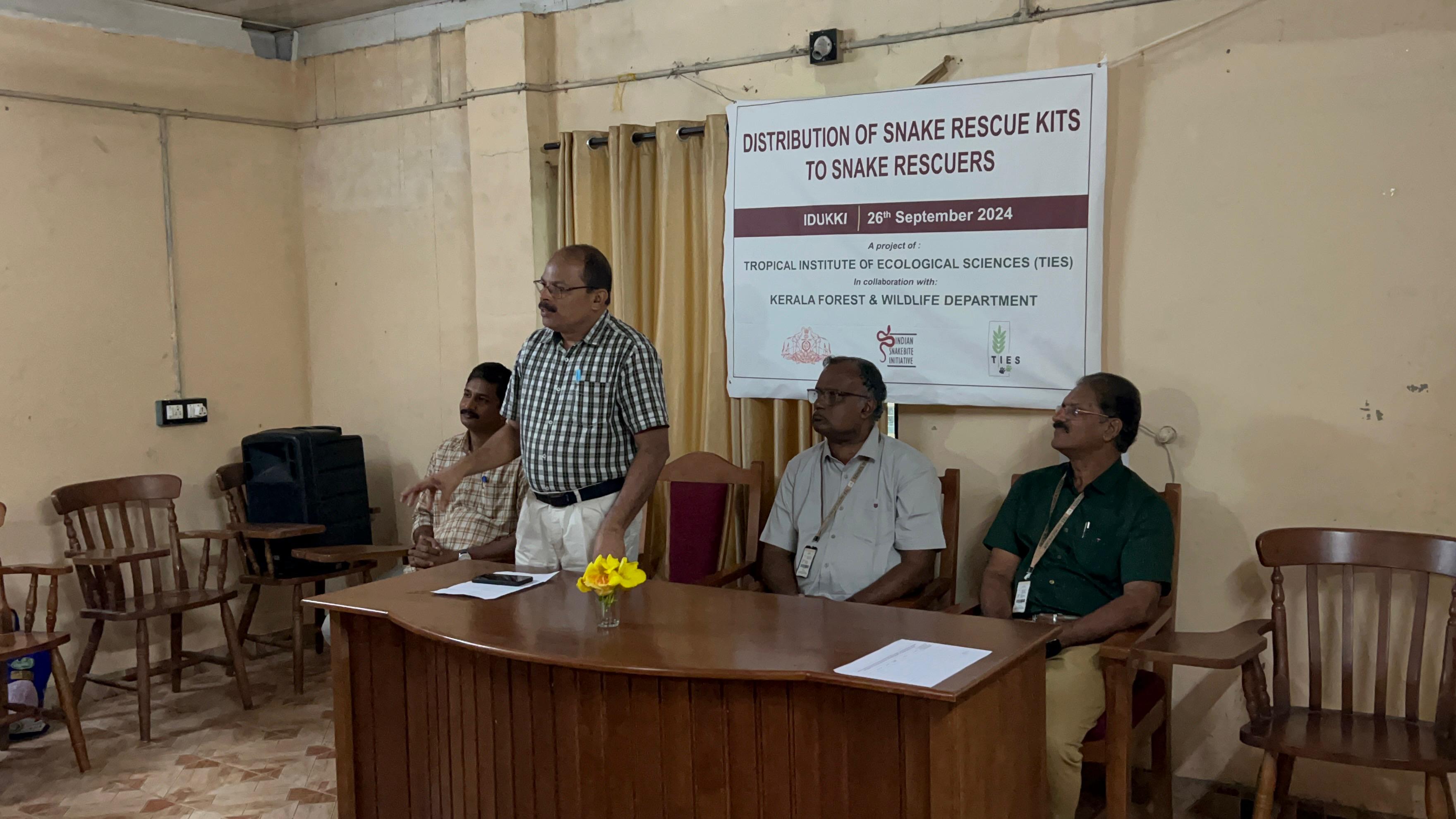 Snake rescue plays a crucial role in safeguarding not just the lives of snakes but also the well-being of rescuers and the community at large. Recognizing this, the Tropical Institute of Ecological Sciences (TIES), in collaboration with the Kerala Forest and Wildlife Department, distributed specialized snake rescue kits to four trained and certified rescuers from the Kerala State Forest Department in Idukki district.