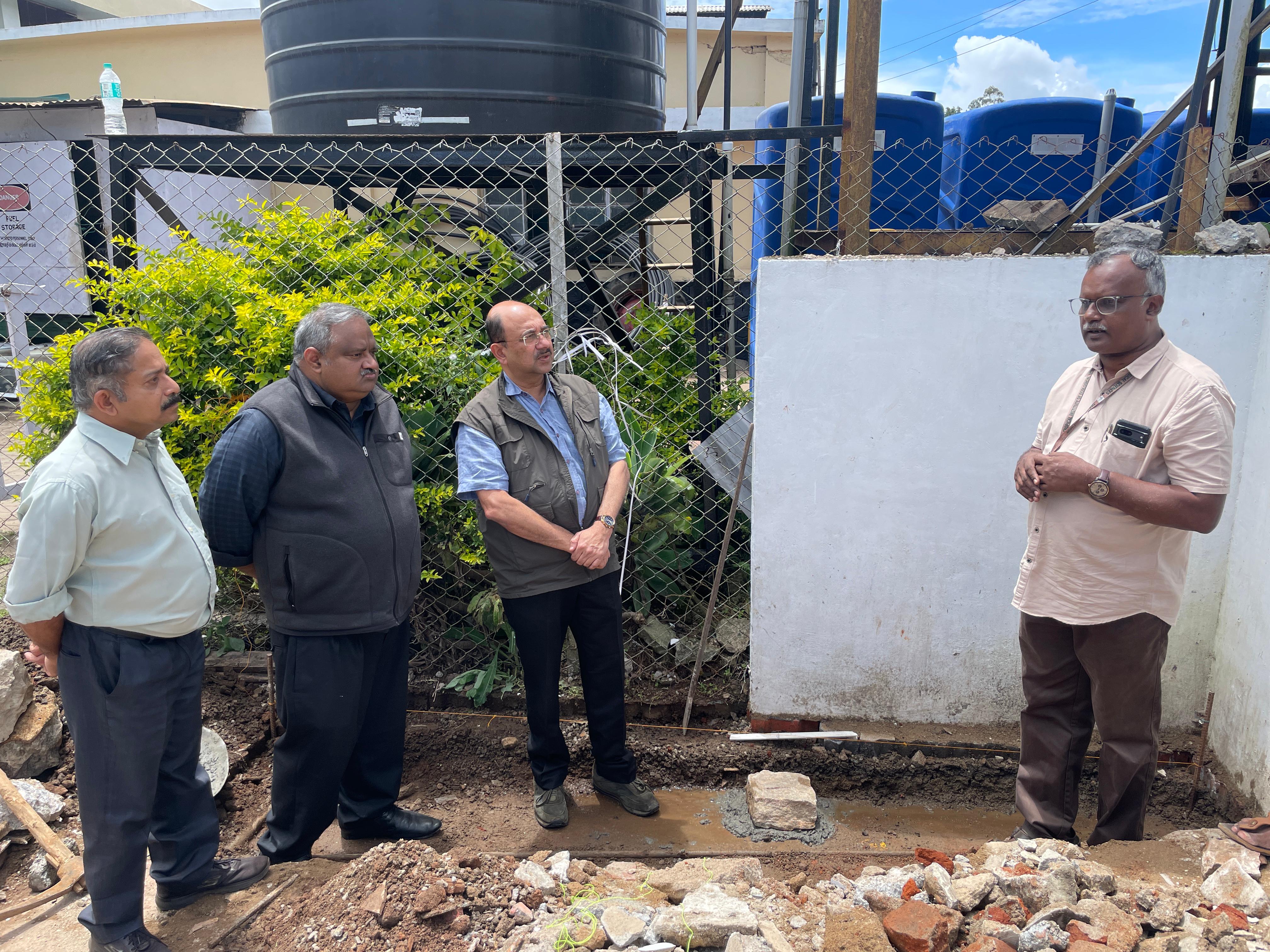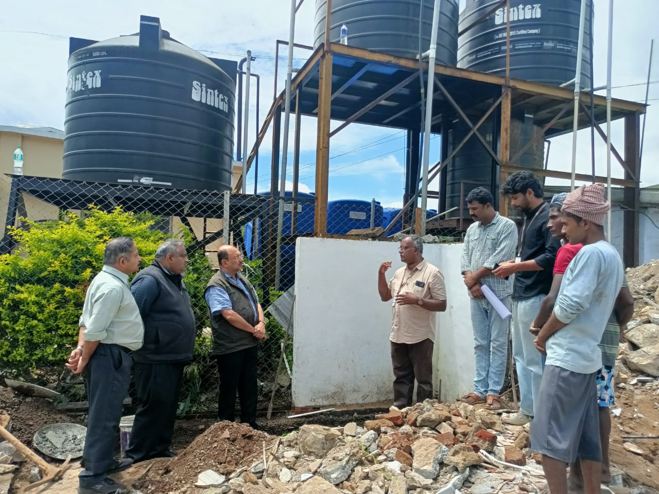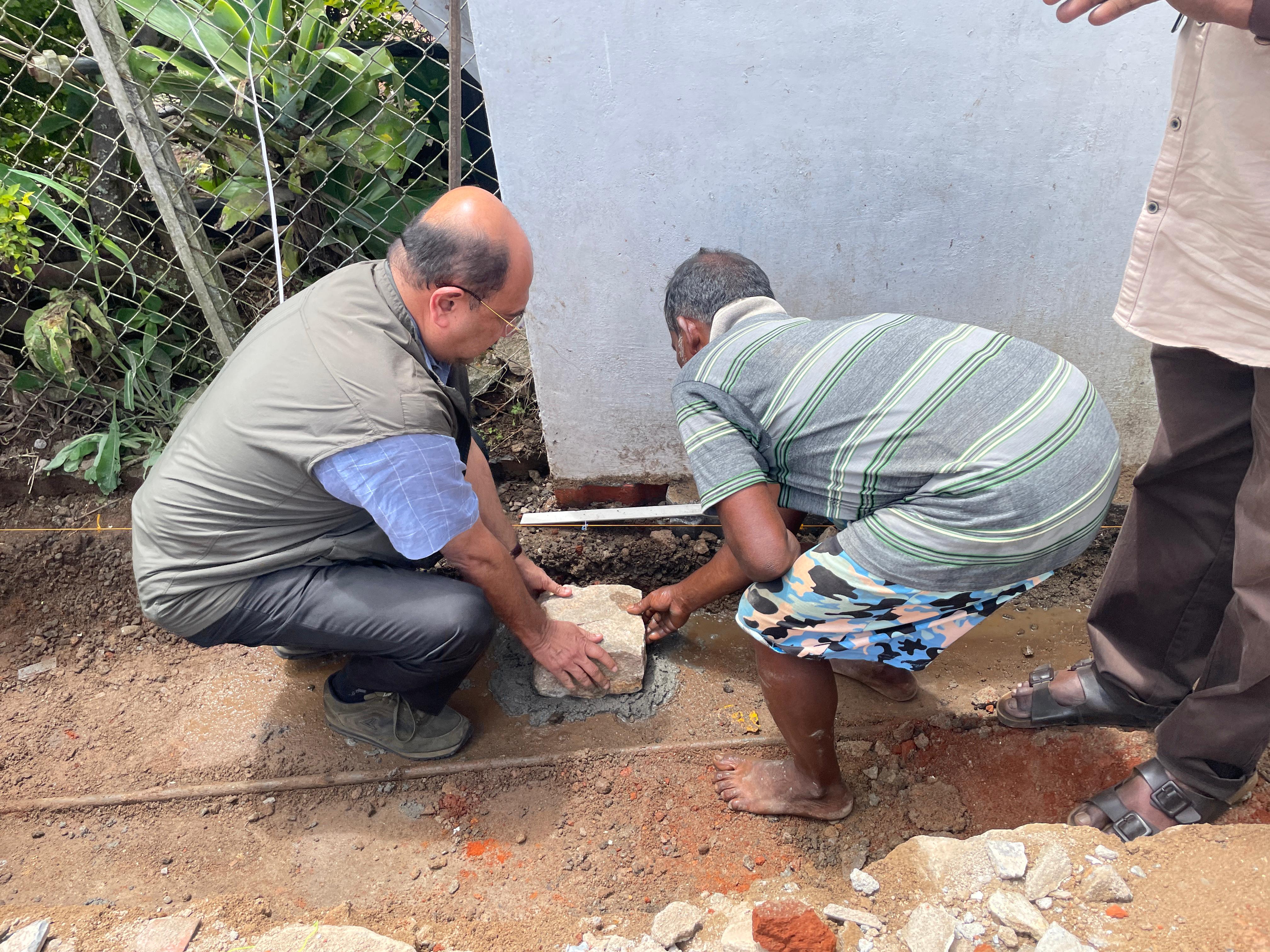 The stone-laying ceremony for the Model Bio-toilet Complex at the KDHP Tea Factory premises in Madupetty, Munnar, was held and was laid by Mr. Mohan Varghese, Vice President of Tea Manufacture at Kanan Devan Hills Plantation Company Private Limited (KDHP). The event was attended by Mr. Raju Warrier, Head of the Engineering Division at KDHP; Mr. Joseph Alex, Manager of the Madupetty Tea Factory; Dr. Punnen Kurian, Secretary of TIES; Mr. Nihal Hussain, Team Leader of the IUCN project; and Mr. Sunil K. Divakaran, Contractor.
