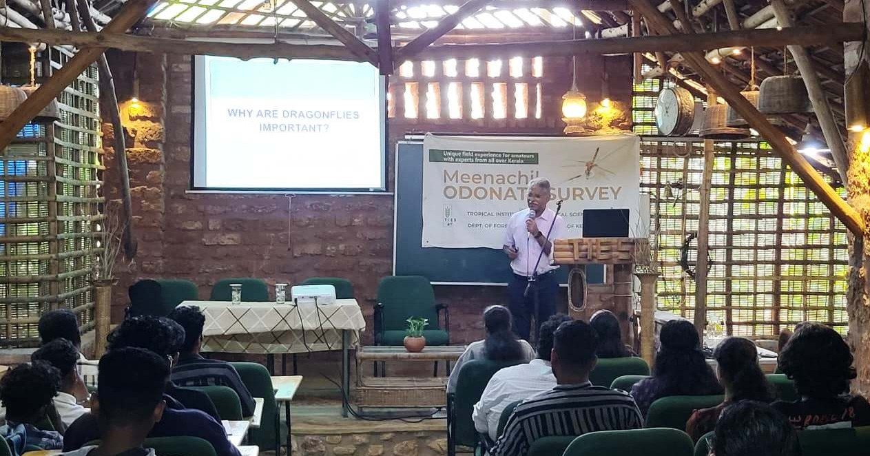 The survey, conducted in partnership with the Kerala Forest Department’s Social Forestry Division, began with a training session inaugurated by K.B. Subash, ACF, and led by Dr. Abraham Samuel, President of TIES, and Dr. Punnen Kurian, Secretary of TIES, both experts in odonates.