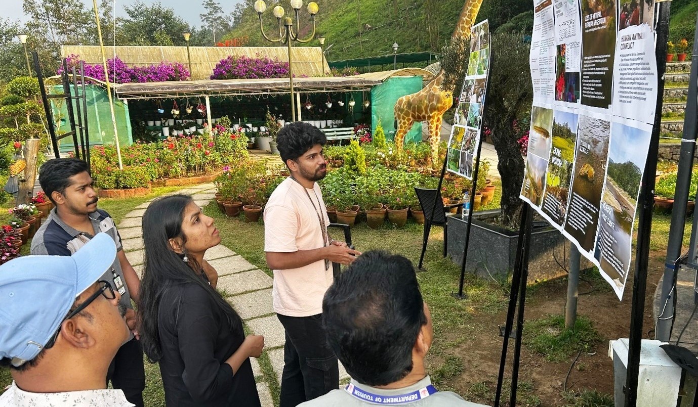 The exhibition was meticulously organized by Mr. Nihal Hussain T.P., Mr. Praful V. Panicker, and Mr. Bechu Punnen Abraham, representing the TIES-IUCN Project. They guided visitors through the displays, explaining each poster and highlighting critical biodiversity and wildlife challenges in Munnar. Their efforts ensured attendees left with a deeper understanding of conservation’s importance and the urgent need for action.