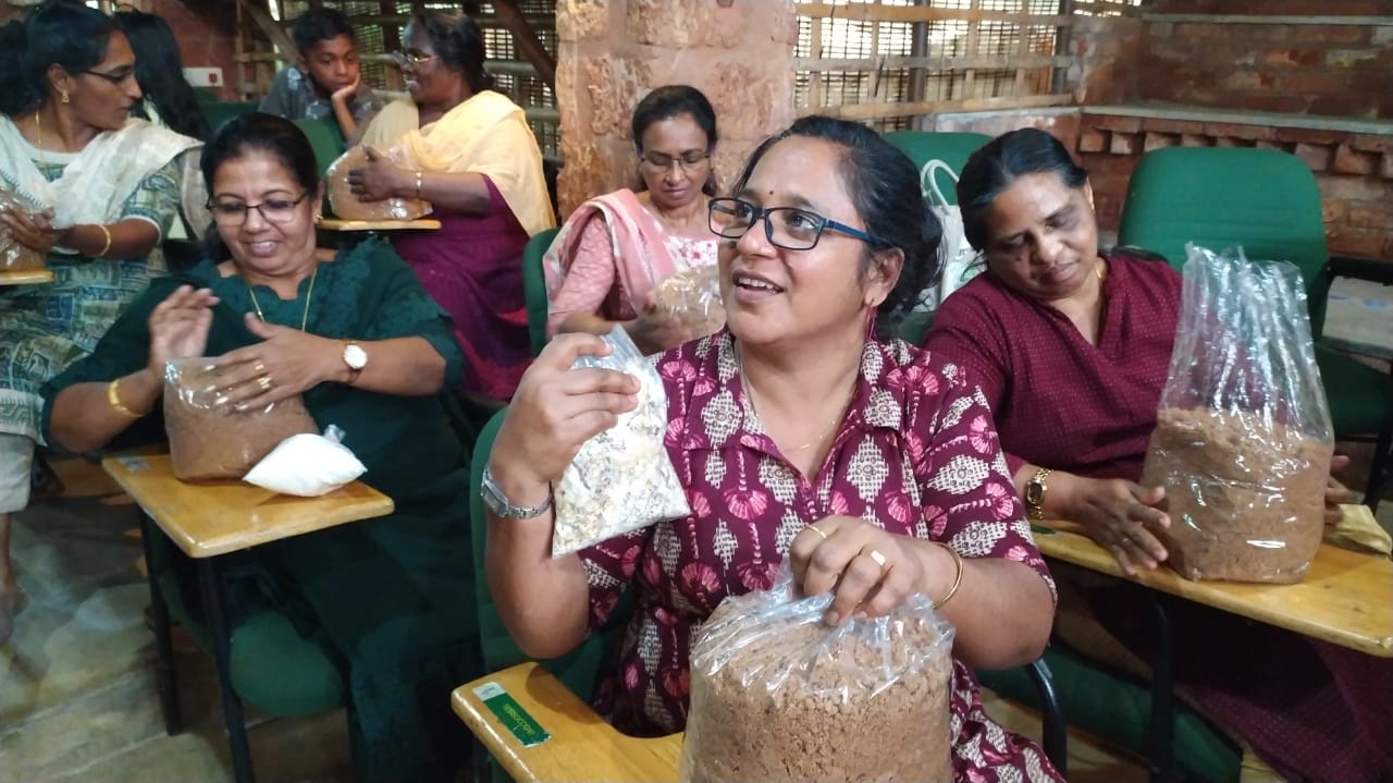 The training was structured into two segments—a theory session and a practical workshop. During the theory session, participants gained insights into different mushroom varieties, tissue culture, mother spawn and spawn production, bed preparation techniques, and post-harvest handling. The practical session allowed participants to apply their learning by preparing their own pellet-based mushroom beds.