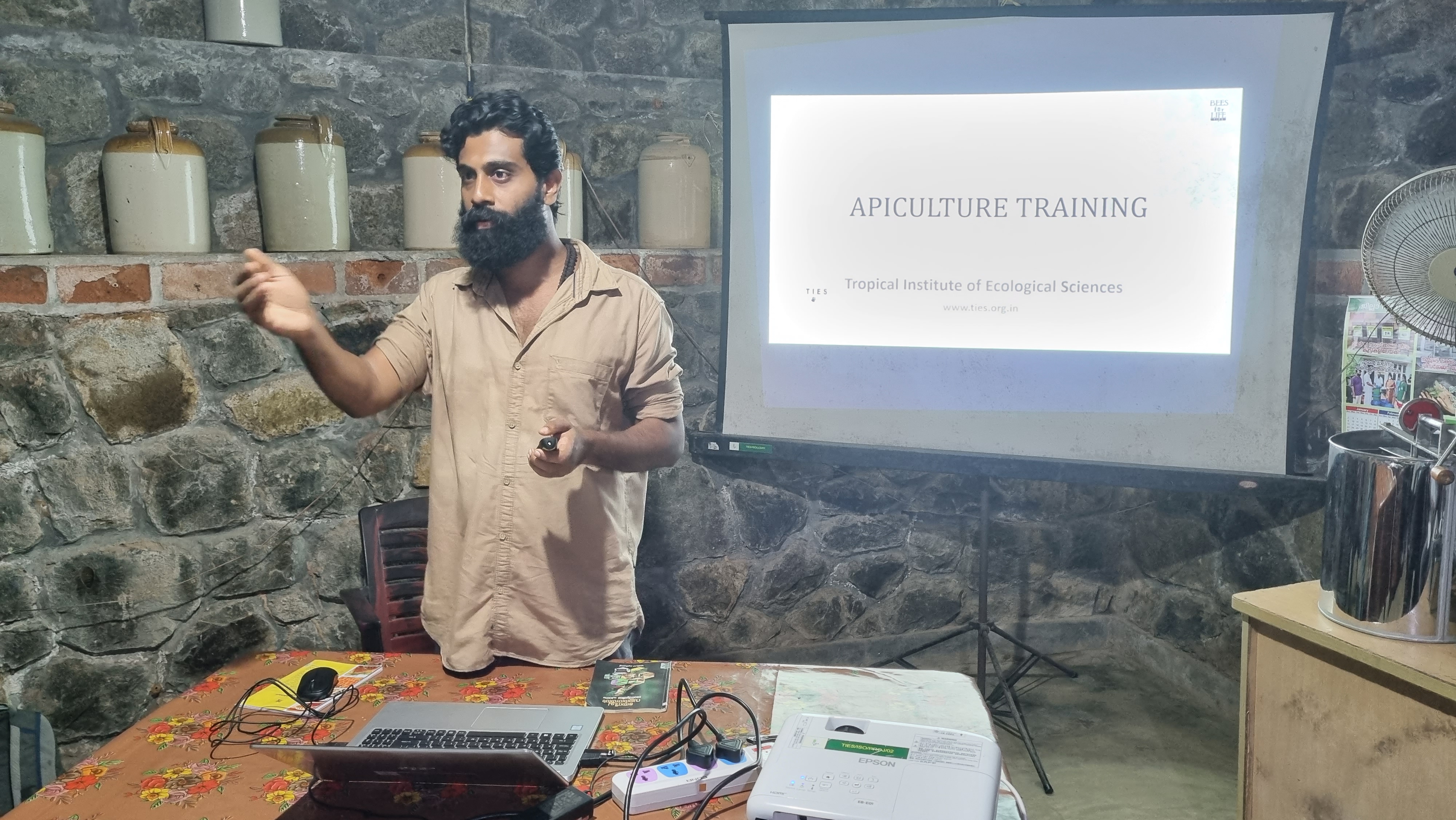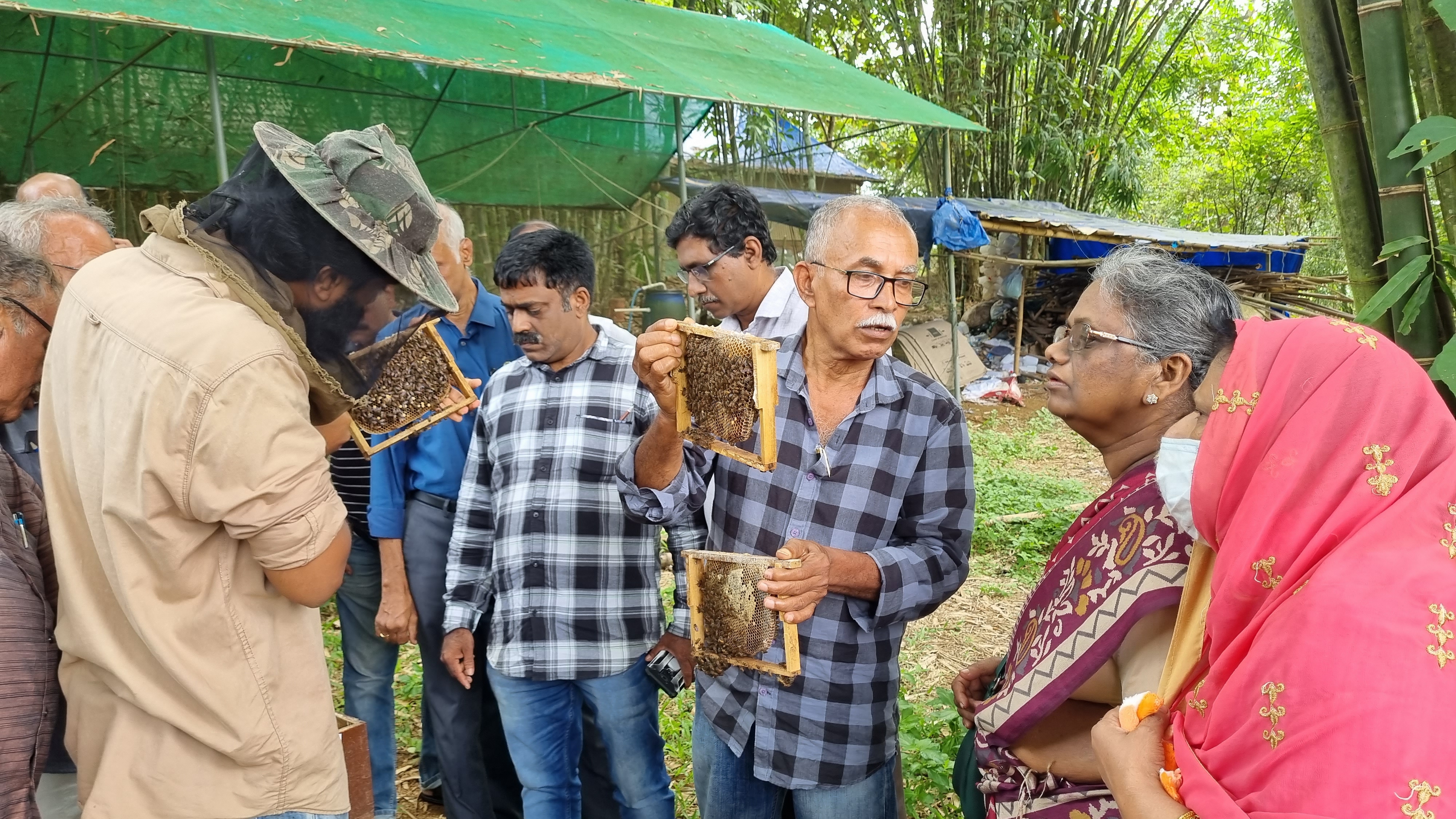 Dr. Punnen Kurian gave an introductory remark during the training session. Mr. Sarath Babu NB, Nature Education Officer at TIES, demonstrated various aspects of apiculture through live videos and pictures. He also piqued participants' interest through practical sessions, during which they gained hands-on experience in handling bee colonies.