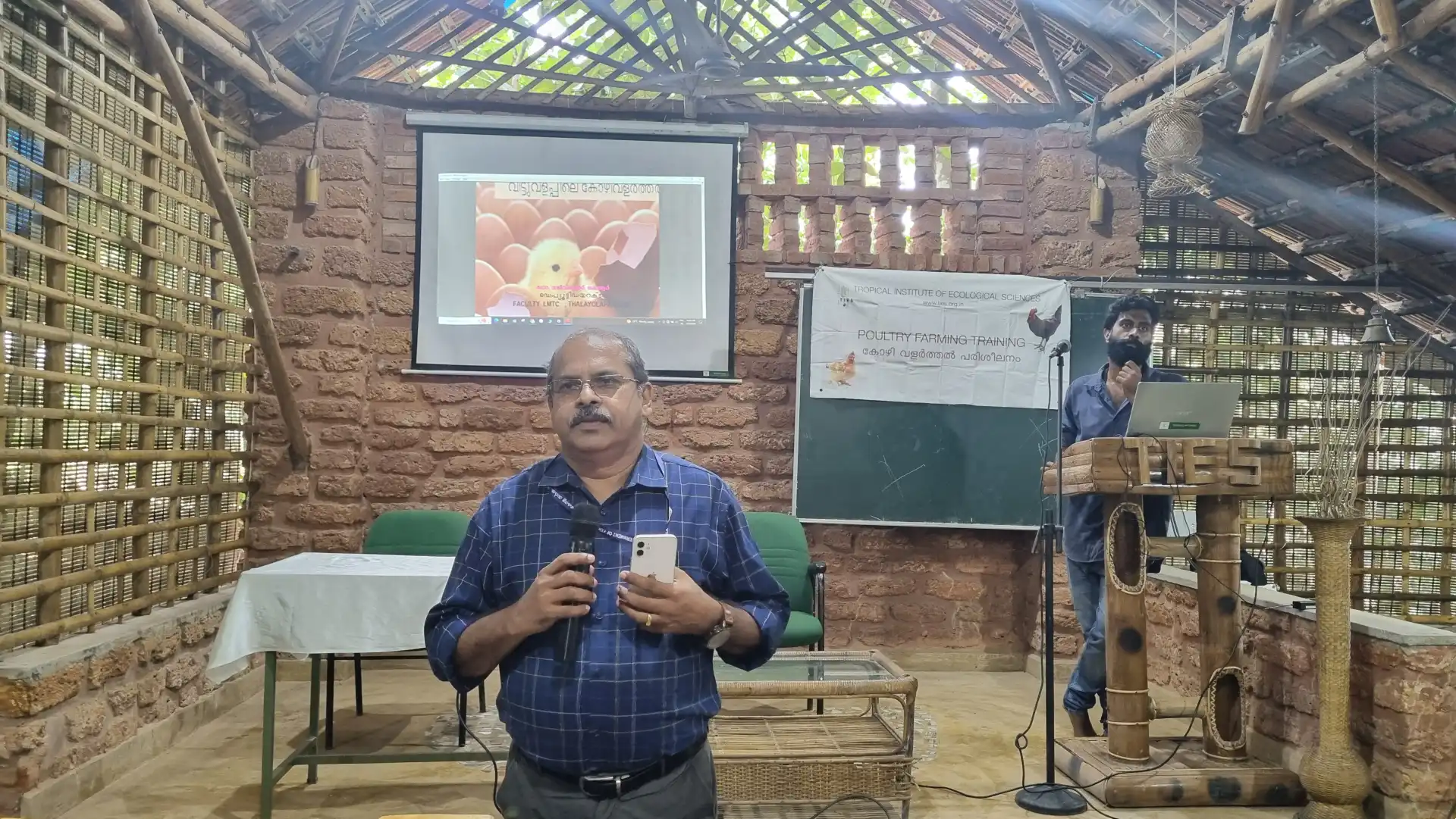 A comprehensive one-day training session on Poultry Farming, specifically focusing on chickens, was organized by the Tropical Institute of Ecological Sciences (TIES). The session aimed to equip participants with the necessary knowledge and skills to manage poultry farms effectively. Key topics covered included varieties of chicken breeds, their characteristics, and specific requirements; various poultry farming methods, types of feeds, nutritional requirements, and feeding schedules to ensure optimal health and productivity of the chickens; best practices in farm management, including hygiene, waste management, and environmental control; and essential vaccination and health management protocols. Models of cages were also demonstrated, and an open session for doubt clarification was held. TIES, committed to promoting a healthy lifestyle through sustainable practices, hosted the session led by Dr. Sajeev Kumar, Chief veterinary officer, Kottayam and Sarath Babu N B, Nature Education Officer at TIES. The session was attended by 15 participants from various sectors of the community.