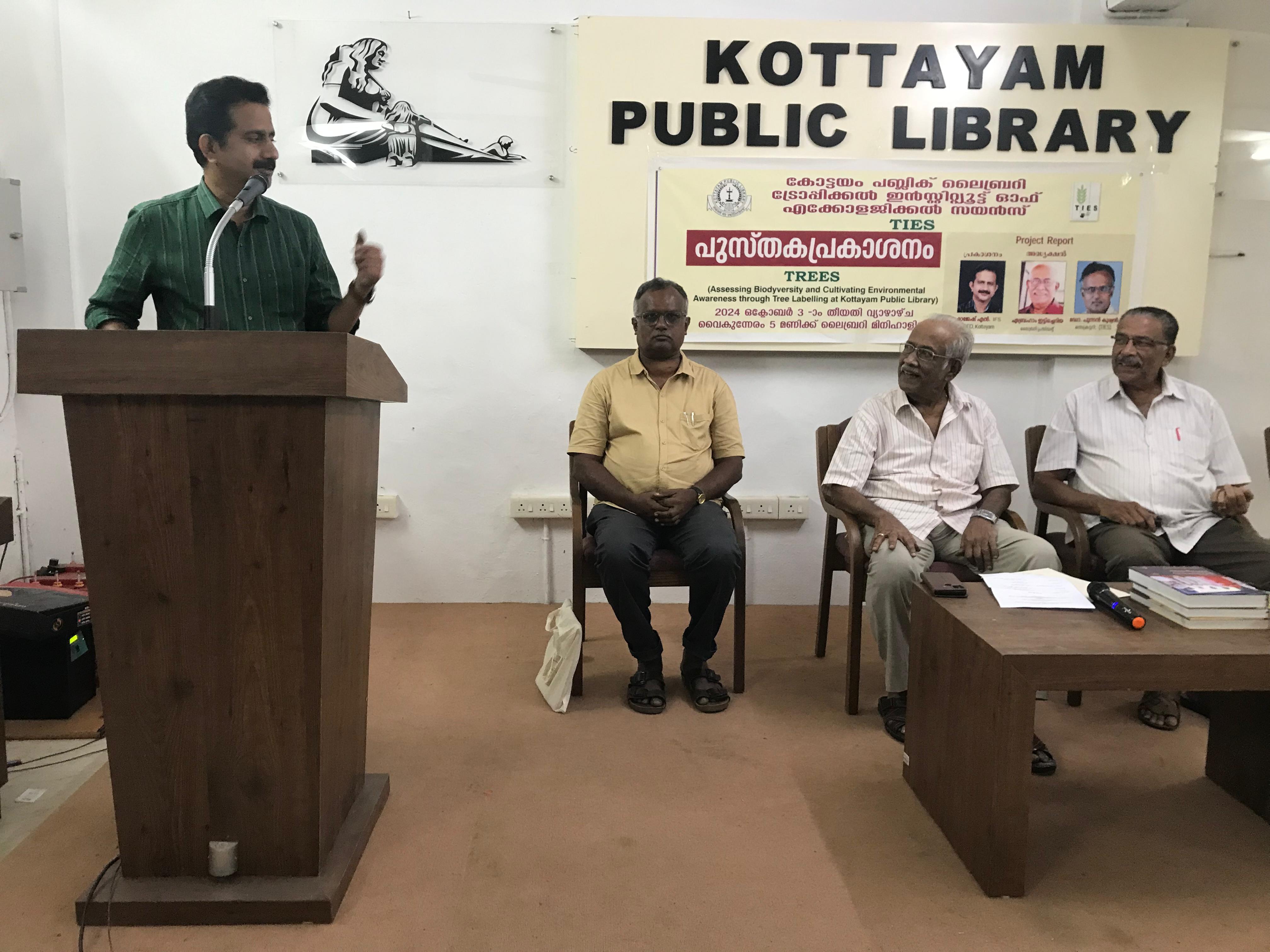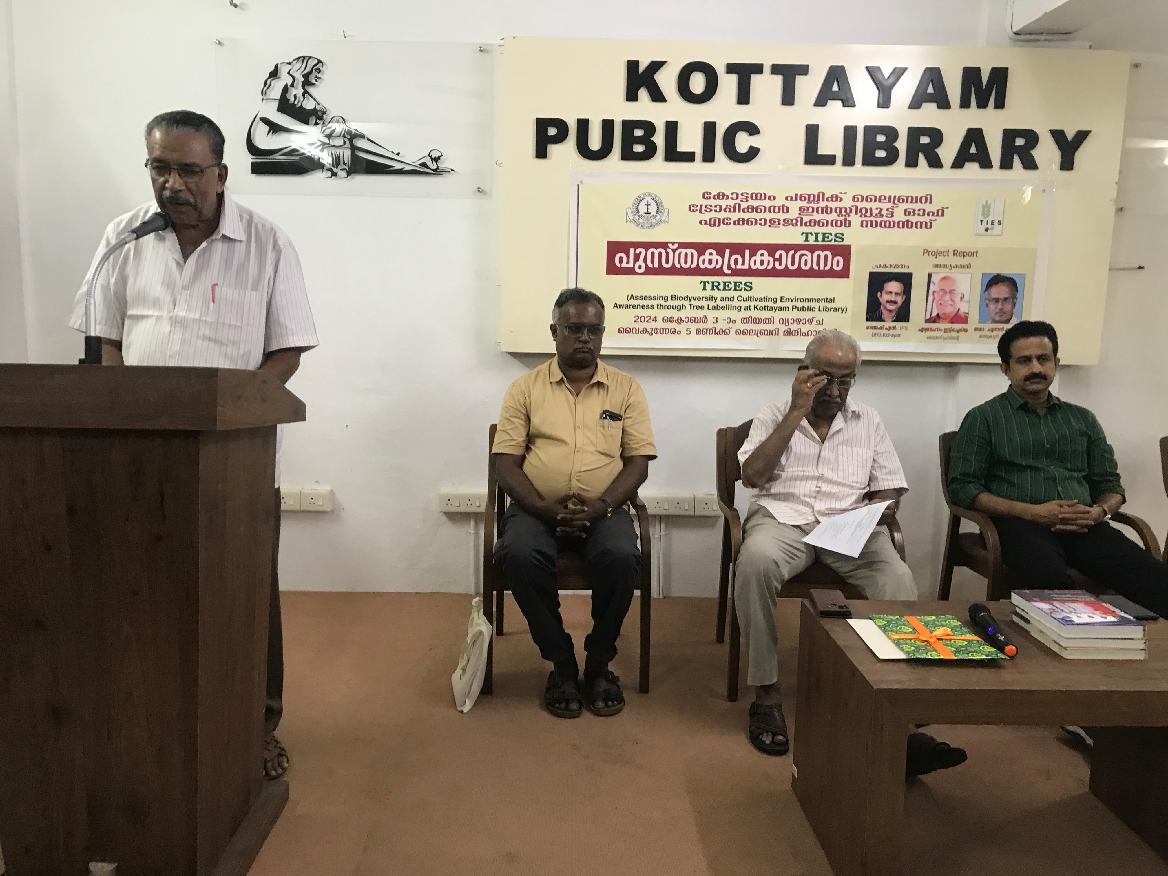 In a significant move to foster environmental awareness and promote biodiversity, the Tropical Institute of Ecological Sciences (TIES) in collaboration with Kottayam Public Library inaugurated the "TREE Labelling" project under the initiative titled TREES (Assessing Biodiversity and Cultivating Environmental Awareness through Tree Labelling at Kottayam Public Library).