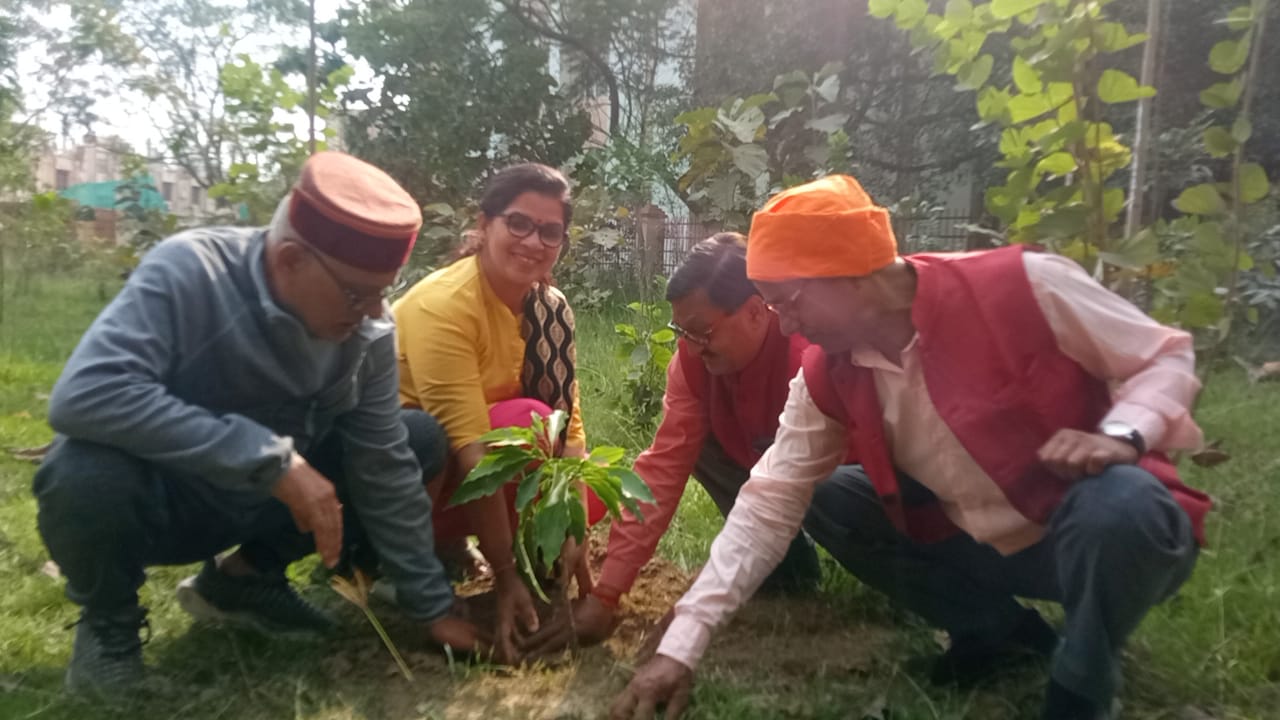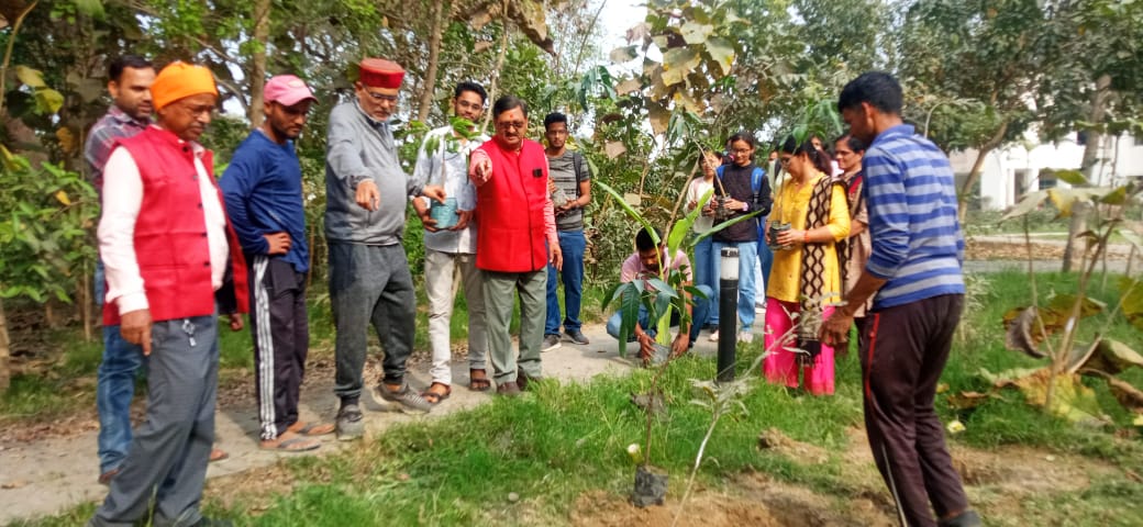 The event was coordinated by Sri Madan Ram Chaurasia, Environment Project Head of Kashi Province, Bharat Vikas Parishad, along with Ganga Haritima's Brand Ambassador Anil Singh. Dr. Bindhu B.K., accompanied by students, planted a diverse range of trees, including Amrapali and Malika mango, Swarn Champa, Red Plumeria, Red Savani, Tacoma, and Madagascar Palm, in Mahamana’s Garden.
