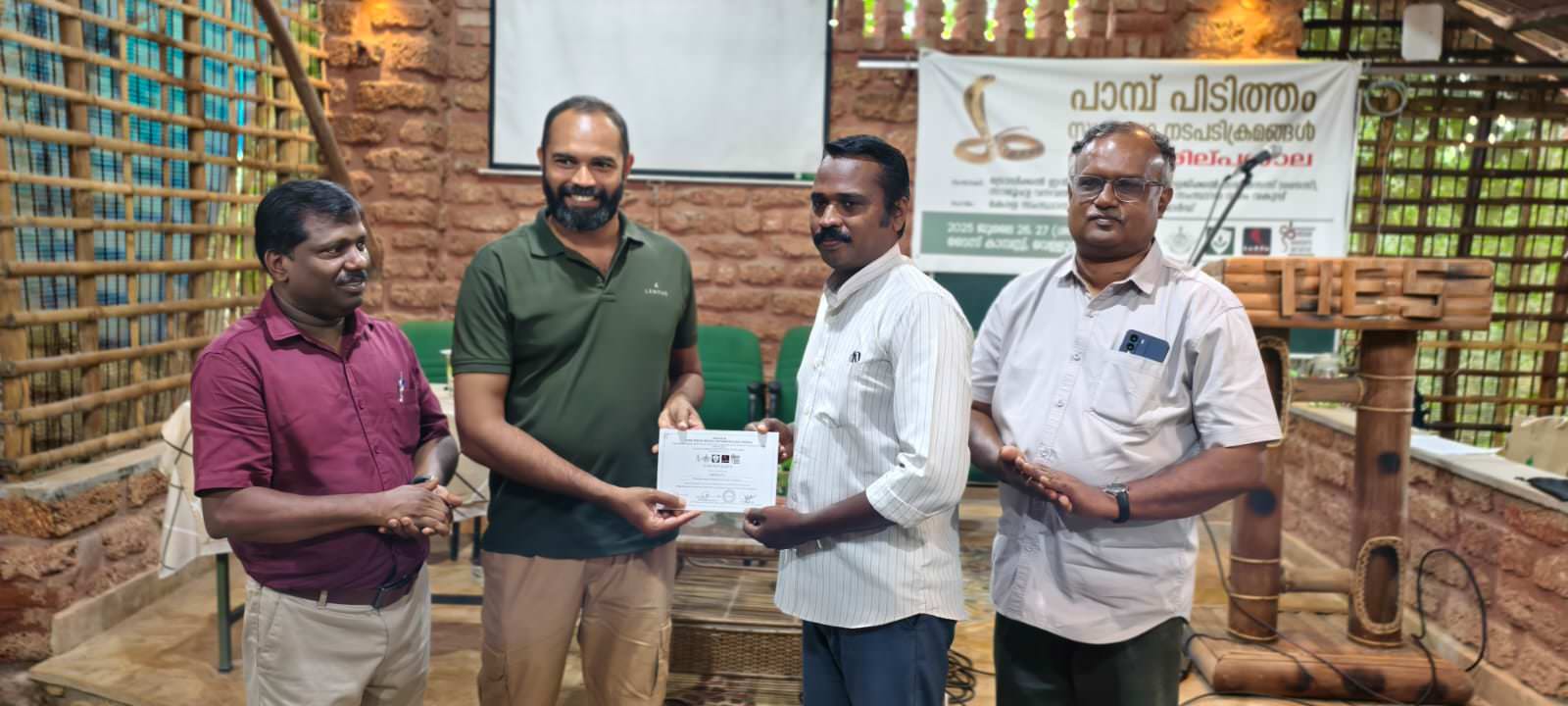 The workshop aimed to strengthen the capacity and field efficiency of certified SARPA Volunteers engaged in snake rescue operations across the state. A key outcome of the training was the preparation of a handbook for certified snake rescuers in Kerala. This initiative also aligns with the Zero Snakebite Death Initiative, which seeks to reduce human-snake conflict through improved awareness and response mechanisms.