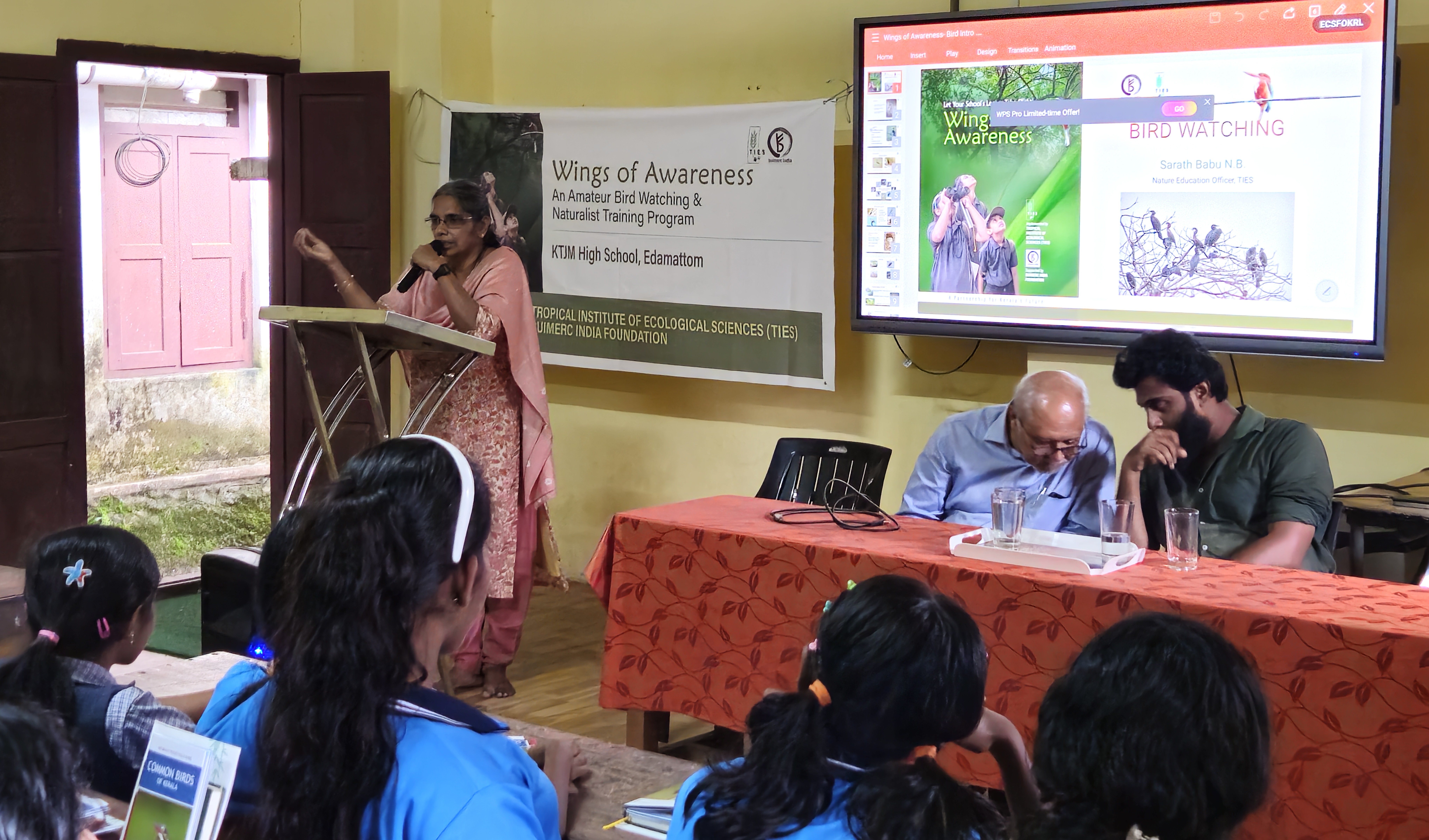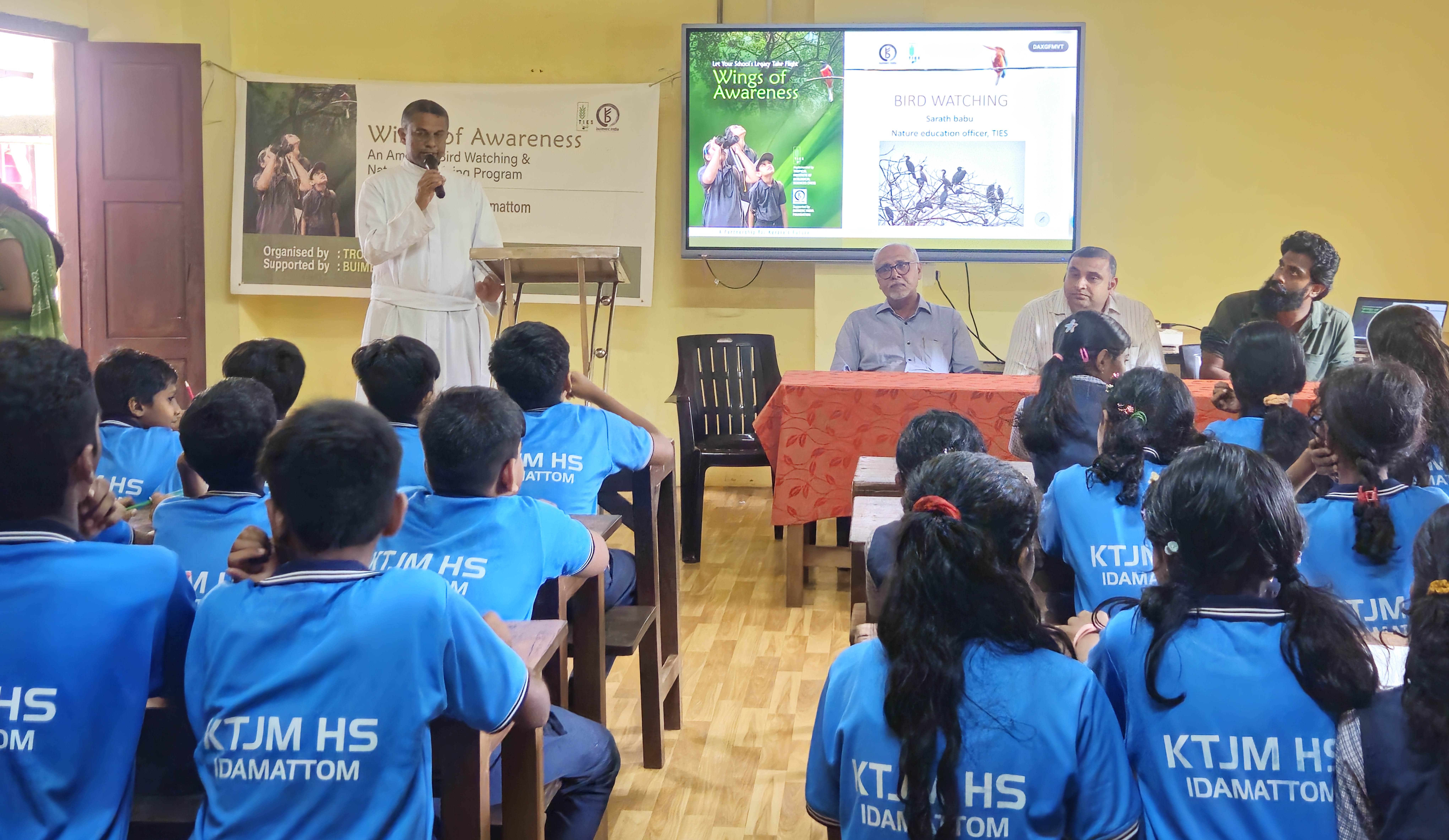The Wings of Awareness orientation session was organized at KTJM High School, Idamattom, as part of the district-wide initiative implemented by the Tropical Institute of Ecological Sciences (TIES) conceived and supported by Buimerc India Foundation. The programme seeks to nurture environmental awareness in students by introducing them to the fascinating world of birds and the practice of bird watching. It aims to help learners build strong connections with nature and grow into future stewards of environmental conservation. The project will be implemented across 20 schools in Kottayam District, engaging around 1,000 students and 60 teachers.