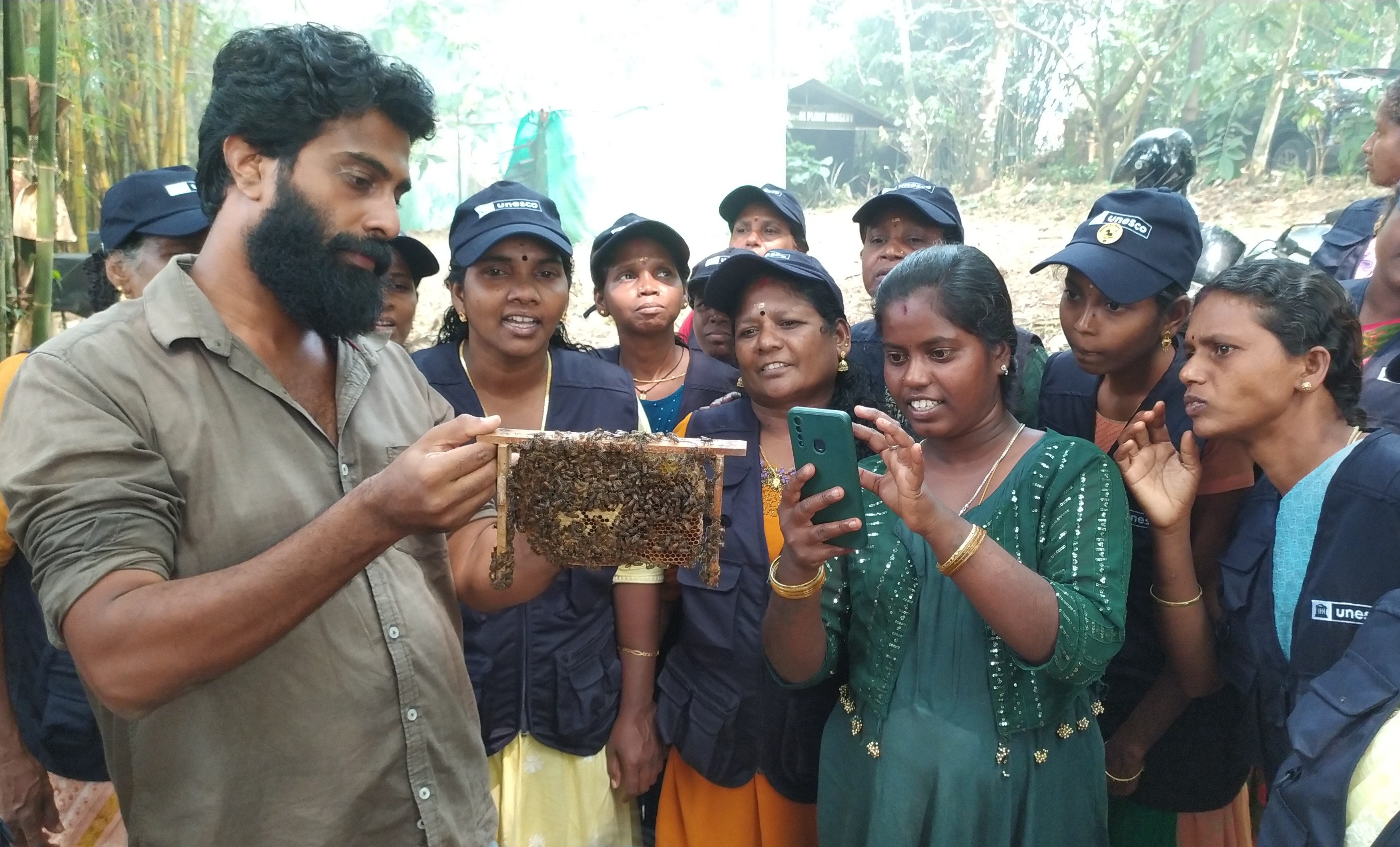 The workshop brought together 24 beekeeper trainees from Tamil Nadu and Nilambur, for whom honey harvesting is a source of livelihood. Training sessions were held at the TIES main campus in Velloor, Kottayam.