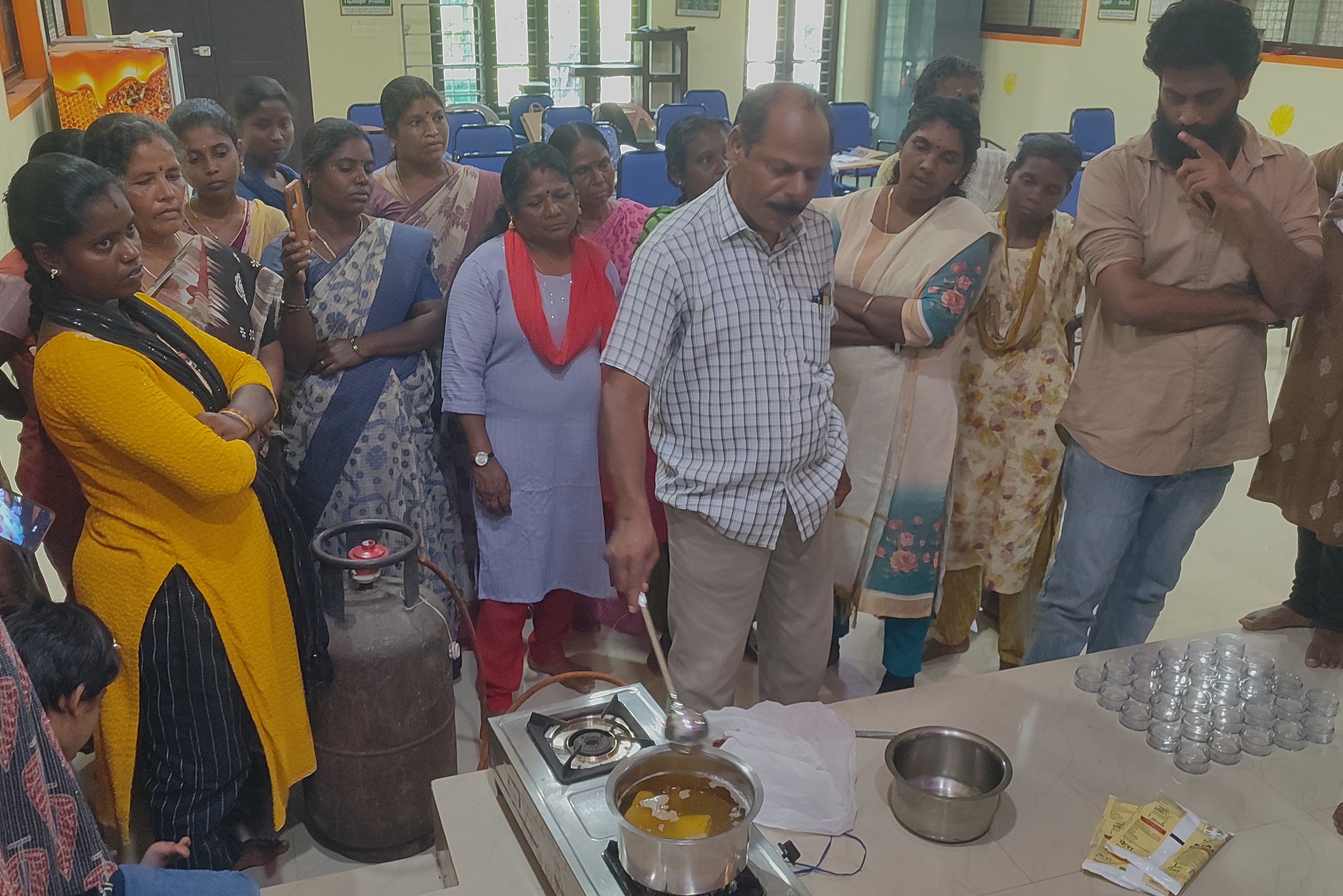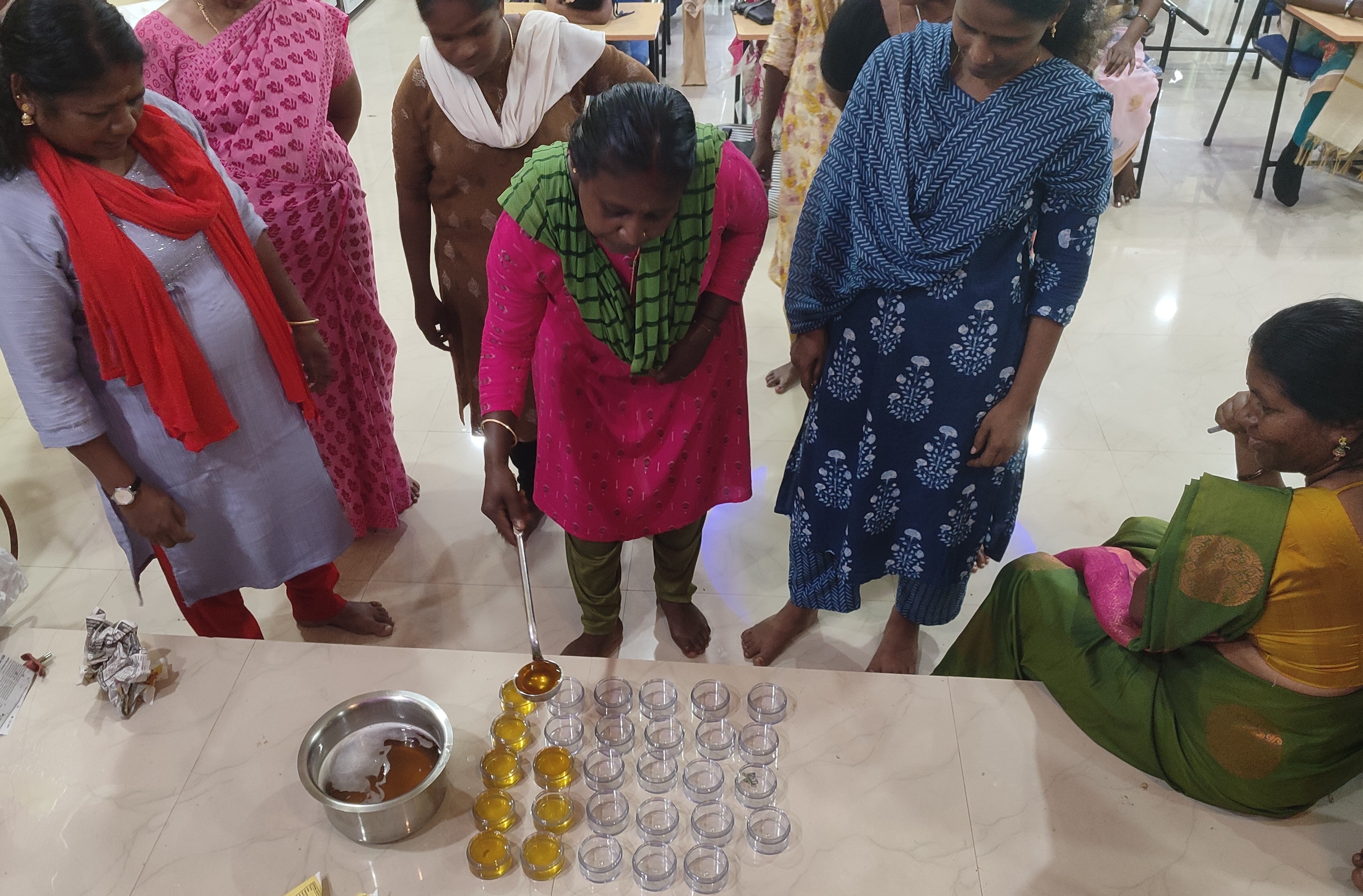 They gained hands-on experience in producing value-added product from honey and beeswax. They also received detailed guidance on preparation methods and correct proportions for products such as lip balm, body balm, soap, and face packs, equipping them with valuable skills to enhance their livelihoods.