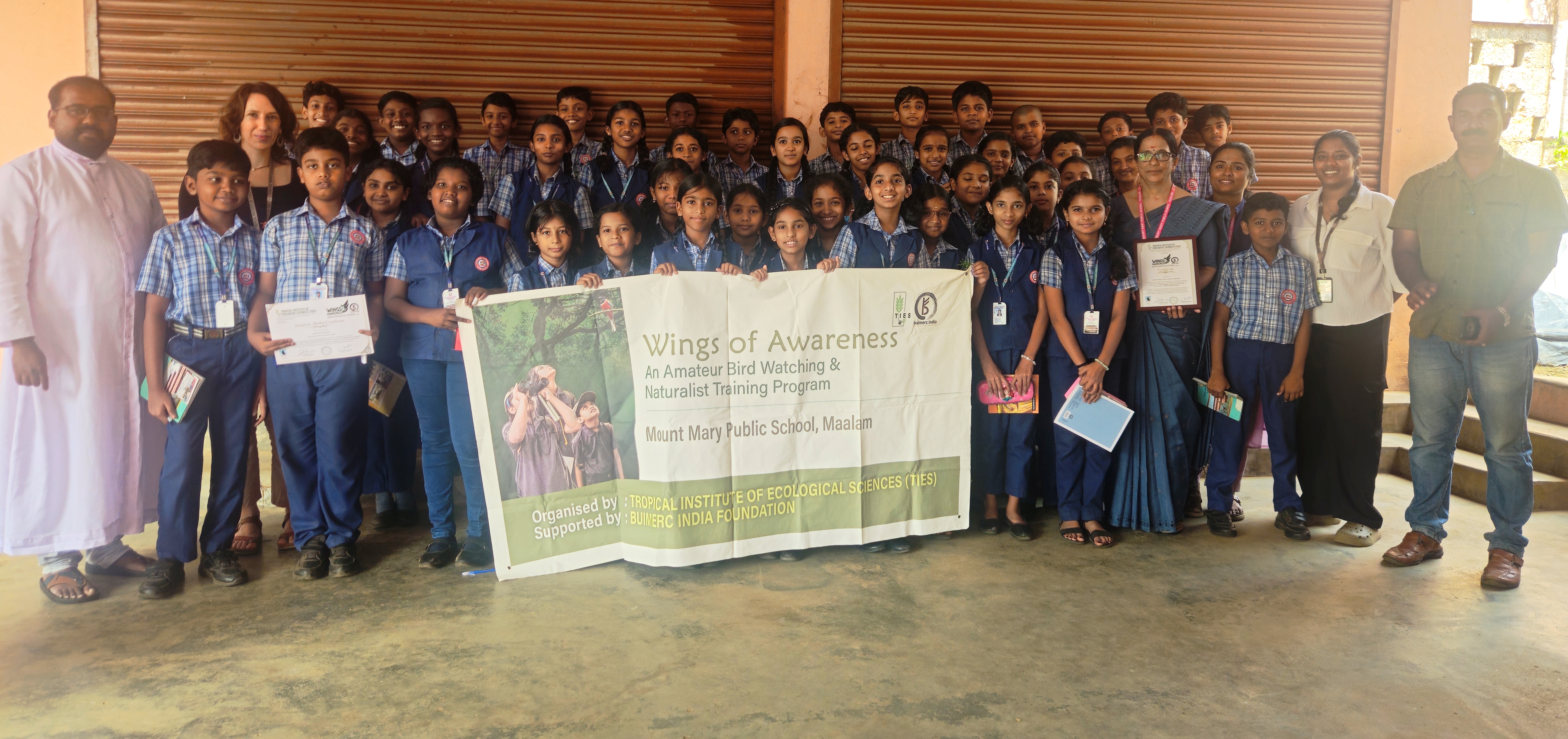 The valedictory ceremony of the Wings of Awareness programme was organized at Mount Mary Public School Maalam, signifying the culmination of the environmental learning initiative carried out in the school. The Wings of Awareness project is implemented by the Tropical Institute of Ecological Sciences (TIES) with financial support from the Buimerc India Foundation. The programme focuses on fostering environmental sensitivity among students by engaging them in activities such as bird observation, nature study, and the documentation of local biodiversity.